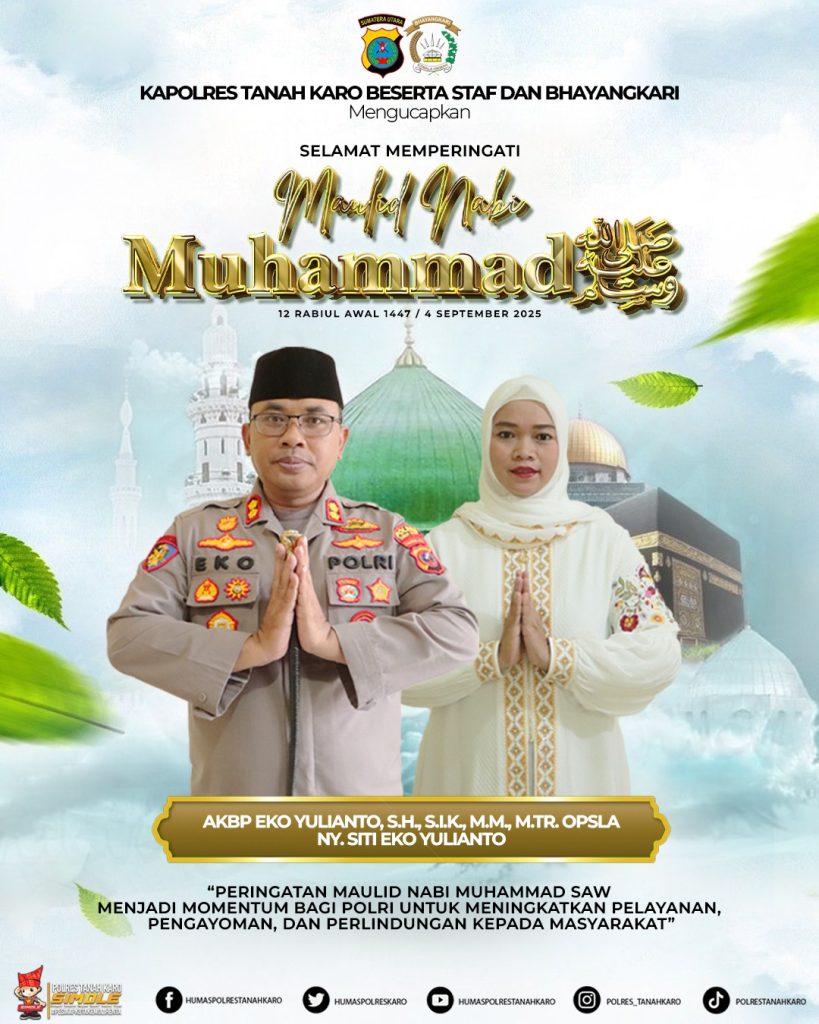 Dalam pernyataan resmi yang disampaikan melalui Humas Polres Tanah Karo, AKBP Eko Yulianto mengajak seluruh masyarakat untuk meneladani akhlak mulia Rasulullah SAW sebagai teladan dalam kehidupan sehari-hari.