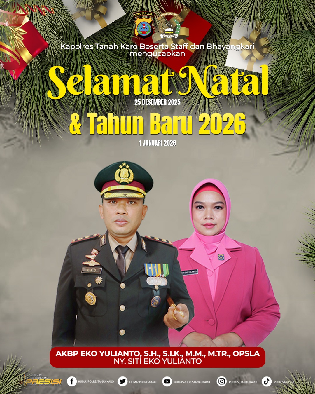 “Semoga damai Natal membawa kasih dan sukacita, serta Tahun Baru menjadi momentum untuk bersama-sama mewujudkan situasi kamtibmas yang aman dan kondusif di wilayah Tanah Karo,” ujar Kapolres.