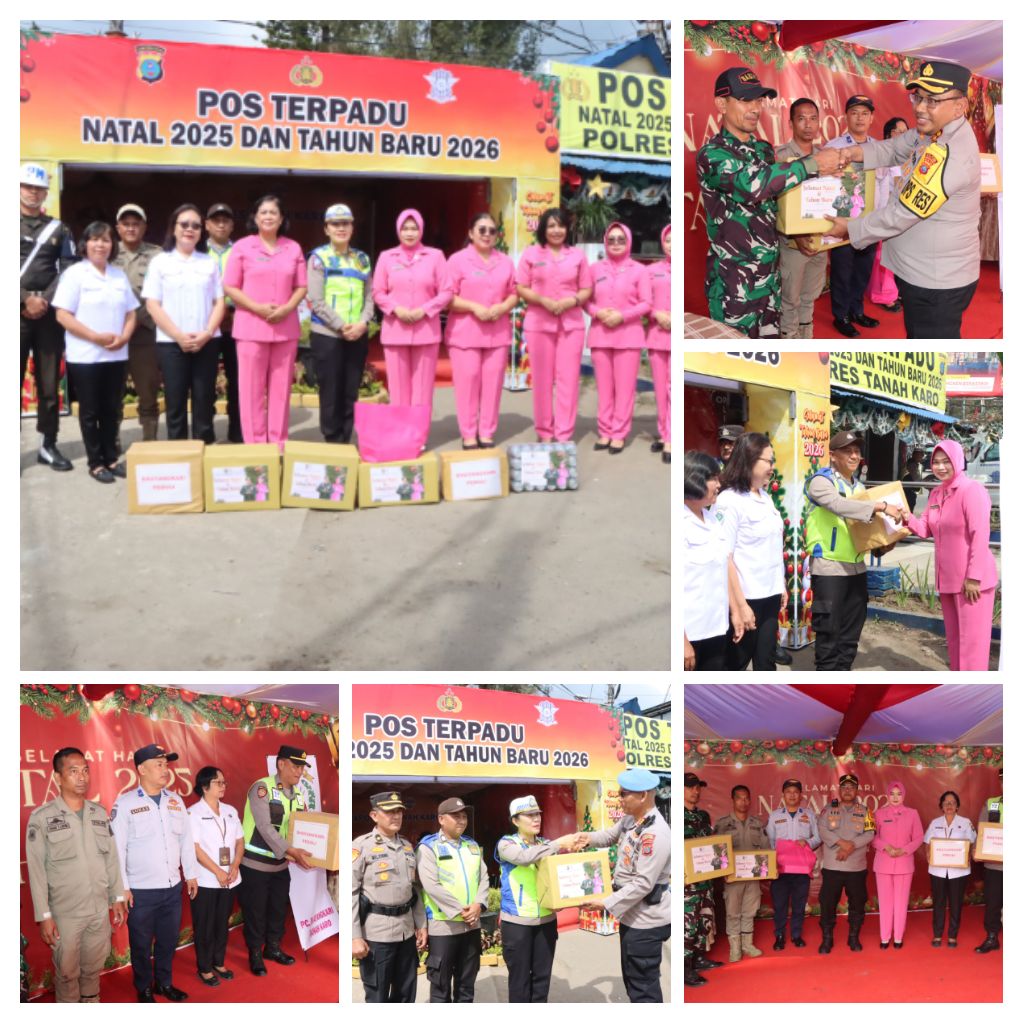 Kapolres Tanah Karo AKBP Eko Yulianto, S.H., S.I.K., M.M., M.Tr. Opsla, bersama Ketua Bhayangkari Cabang Tanah Karo Ny. Siti Eko Yulianto, didampingi para Pejabat Utama (PJU) Polres Tanah Karo serta pengurus Bhayangkari, melaksanakan kunjungan ke seluruh Pos Pengamanan (Pos Pam) dalam rangka Operasi Lilin Toba 2025, Rabu (24/12/2025) sekitar pukul 10.00 WIB.