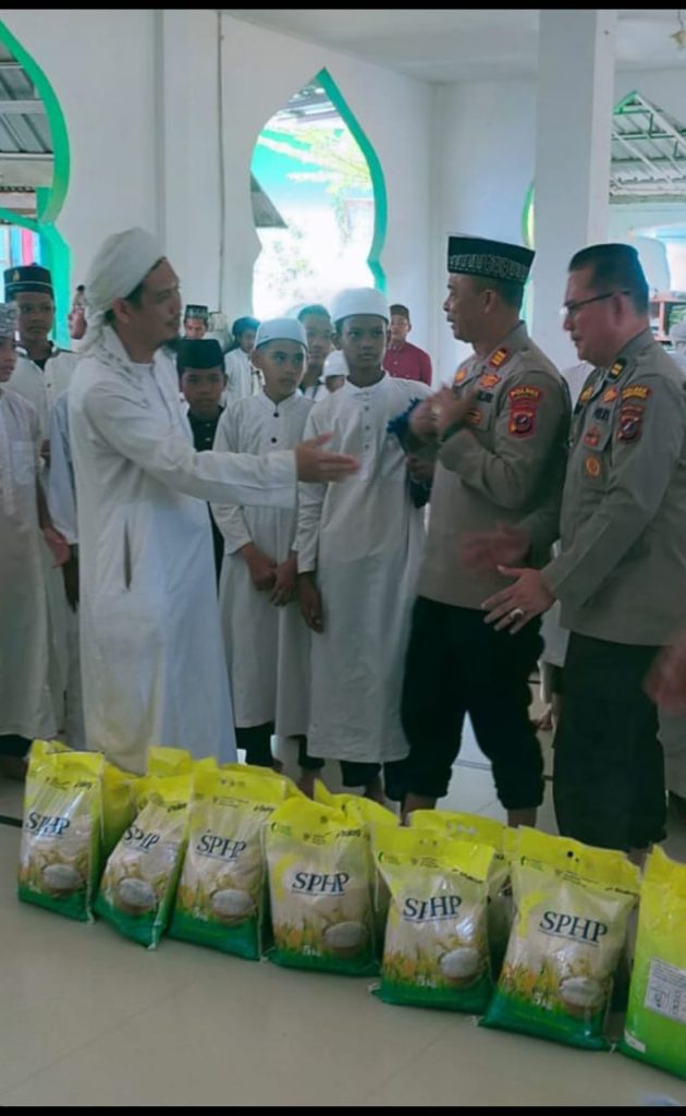 Sebagai bentuk kepedulian, Polsek Bilah Hulu juga menyerahkan bantuan berupa 20 karung beras kepada para santri yang diterima langsung oleh pengurus pondok.