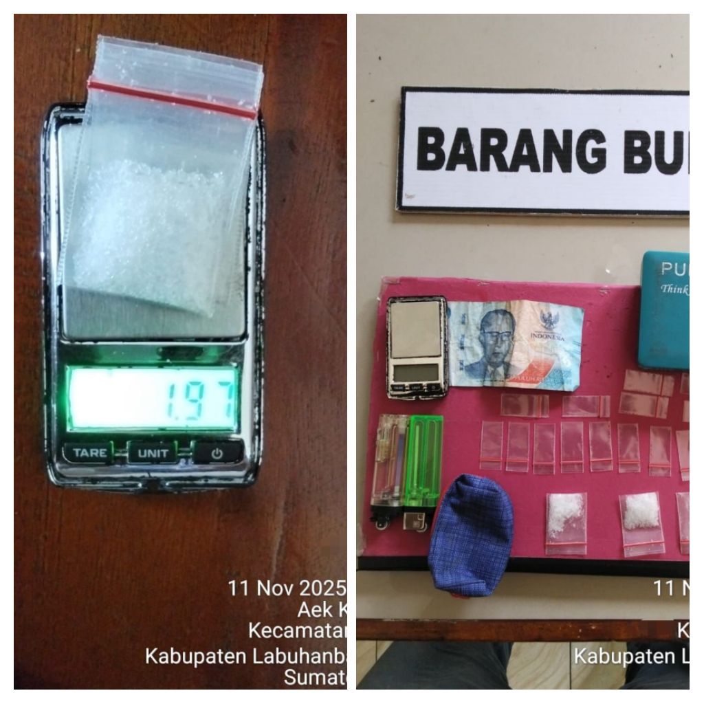 Personel Unit Reskrim Polsek Na IX-X Polres Labuhanbatu berhasil mengungkap kasus penyalahgunaan narkotika jenis sabu-sabu di wilayah hukumnya. Pengungkapan ini dilakukan pada Selasa (11/11/2025) di Dusun IIB, Desa Kampung Pajak, Kecamatan Na IX-X, Kabupaten Labuhanbatu Utara.