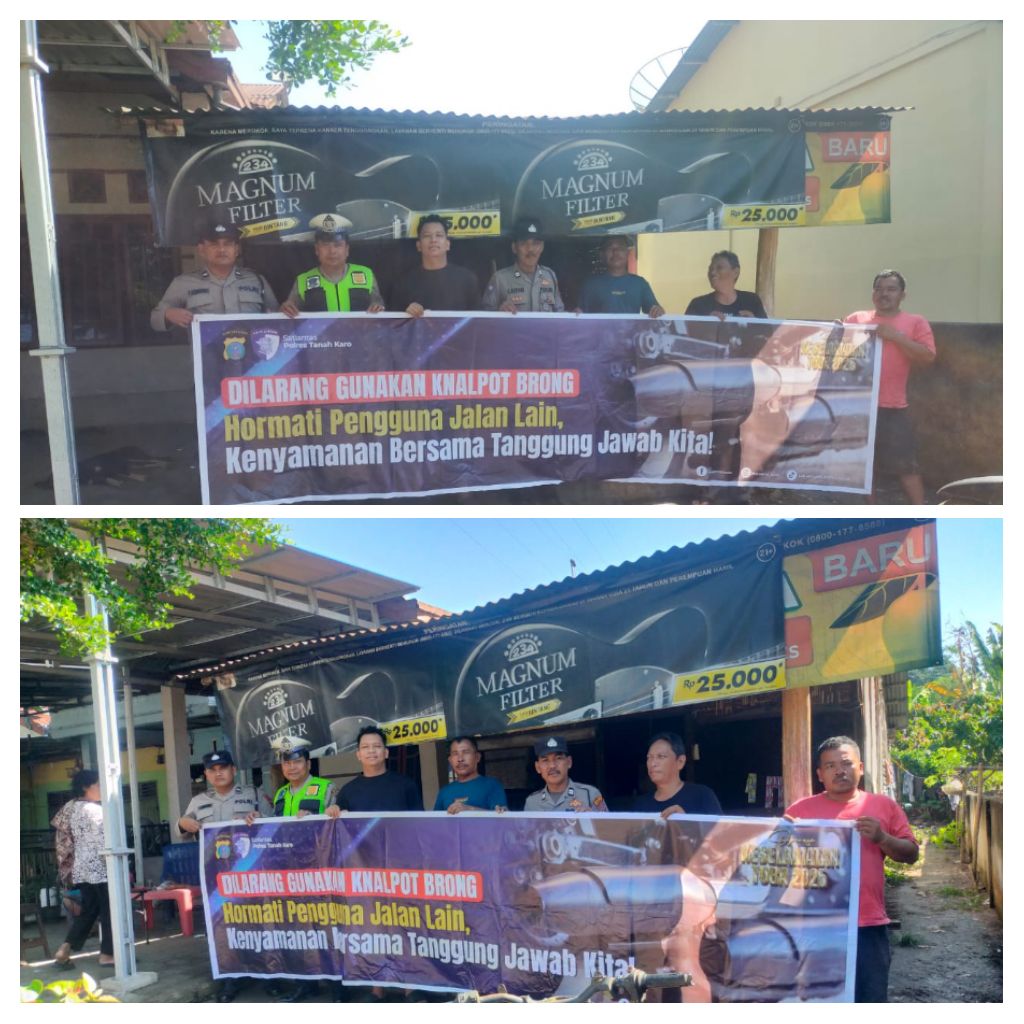 Dalam sosialisasi tersebut, petugas menyampaikan imbauan pentingnya tertib berlalu lintas, antara lain penggunaan helm berstandar SNI, kelengkapan kendaraan bermotor, kepemilikan SIM dan STNK, larangan melawan arus, tidak menggunakan ponsel saat berkendara, serta larangan penggunaan knalpot tidak sesuai spesifikasi teknis atau knalpot blong.