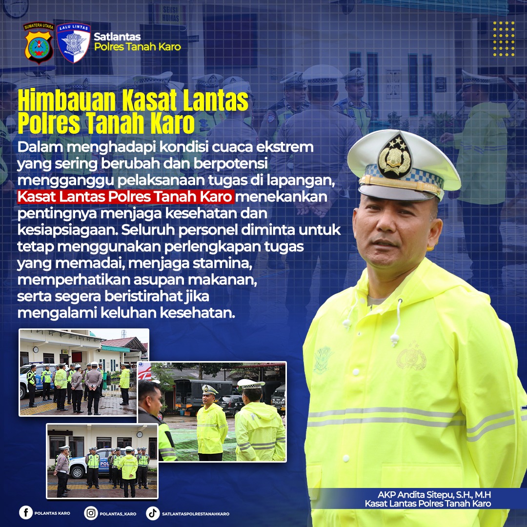 Imbauan ini menjadi bagian dari upaya antisipasi Polres Tanah Karo agar pelayanan kepada masyarakat tetap berjalan optimal meskipun menghadapi kondisi cuaca yang kurang mendukung.