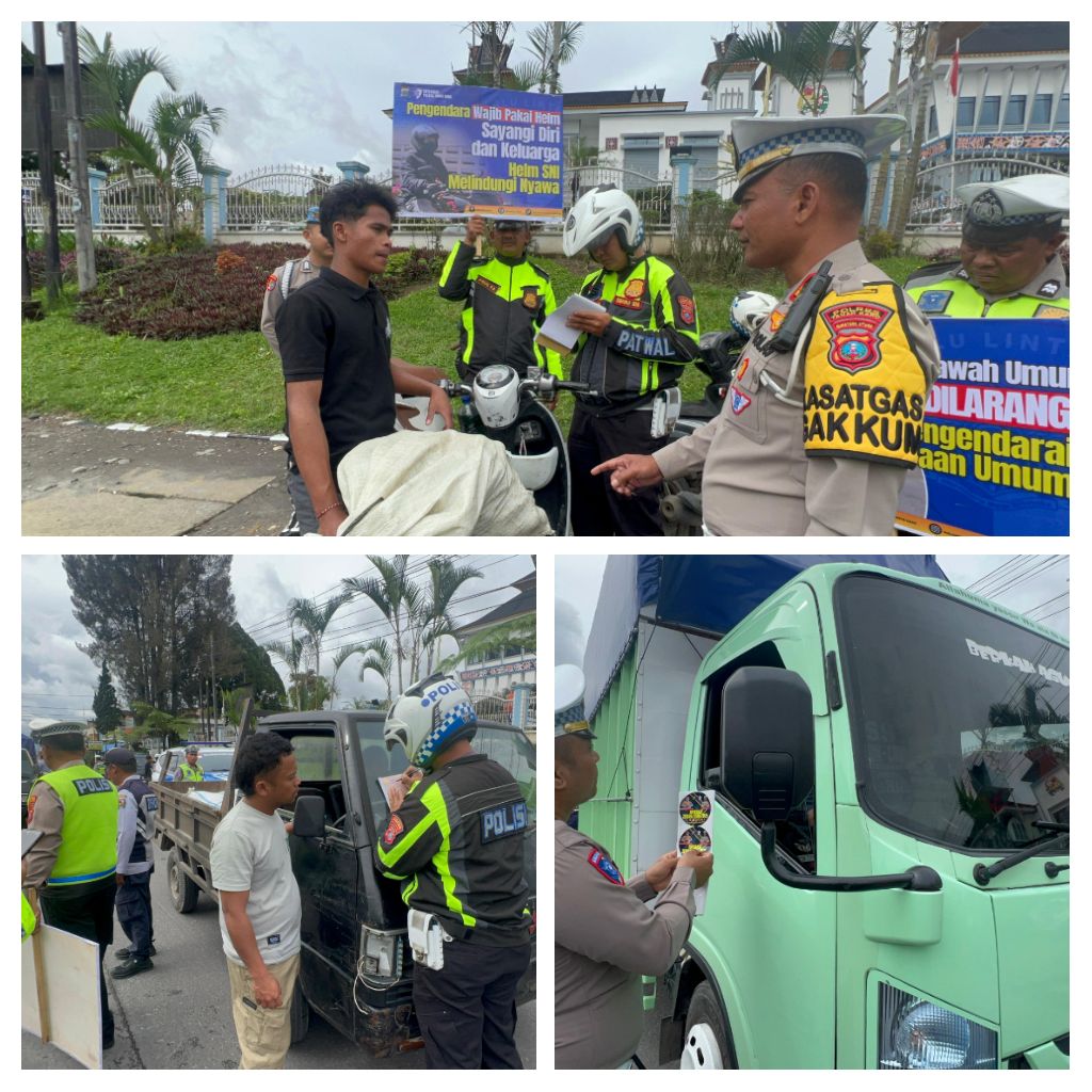 Dalam kegiatan tersebut, personel Satlantas membagikan leaflet, menempelkan stiker imbauan, serta membentangkan spanduk berisi pesan keselamatan berkendara. Kegiatan ini bertujuan meningkatkan kepatuhan masyarakat terhadap peraturan lalu lintas selama pelaksanaan Operasi Zebra Toba 2025.