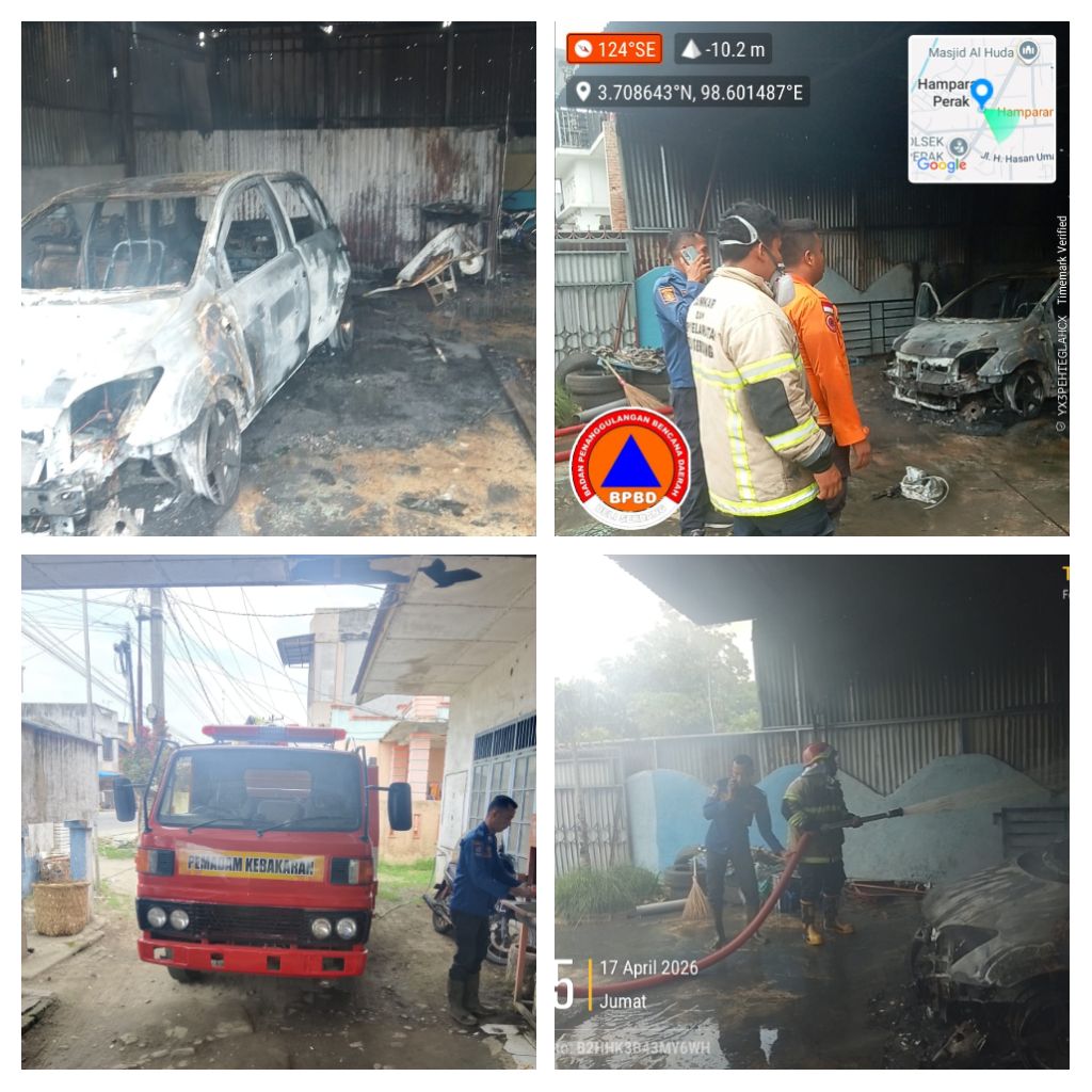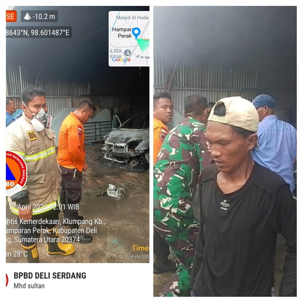 Kebakaran Bengkel di Hamparan Perak, Dua Unit Mobil Hangus Diduga Akibat Korsleting Saat Pengelasan