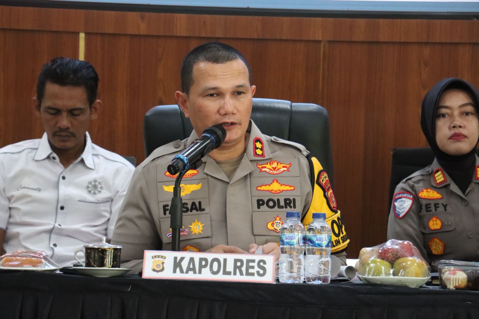 Konferensi pers dipimpin langsung oleh Kapolres Pidie Jaya AKBP Ahmad Faisal Pasaribu, didampingi Wakapolres Kompol Iswahyudi, para Pejabat Utama (PJU) Polres Pidie Jaya, serta dihadiri insan pers dari berbagai media.