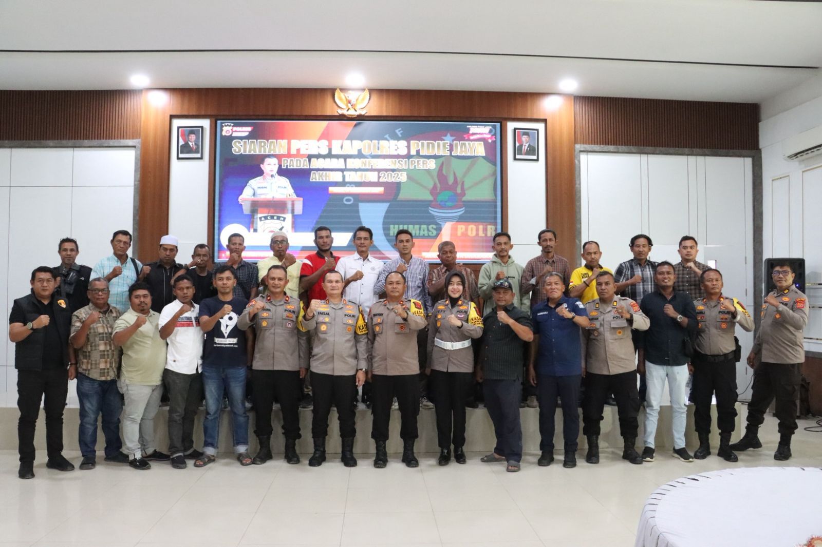 Kepolisian Resor (Polres) Pidie Jaya menggelar Konferensi Pers Akhir Tahun 2025 sebagai wujud transparansi dan akuntabilitas kinerja Polri kepada masyarakat. Kegiatan ini berlangsung pada Rabu, 31 Desember 2025, pukul 09.00 WIB, bertempat di Aula Tathya Dharaka Polres Pidie Jaya, Desa Teungkluet, Kecamatan Trienggadeng, Kabupaten Pidie Jaya.