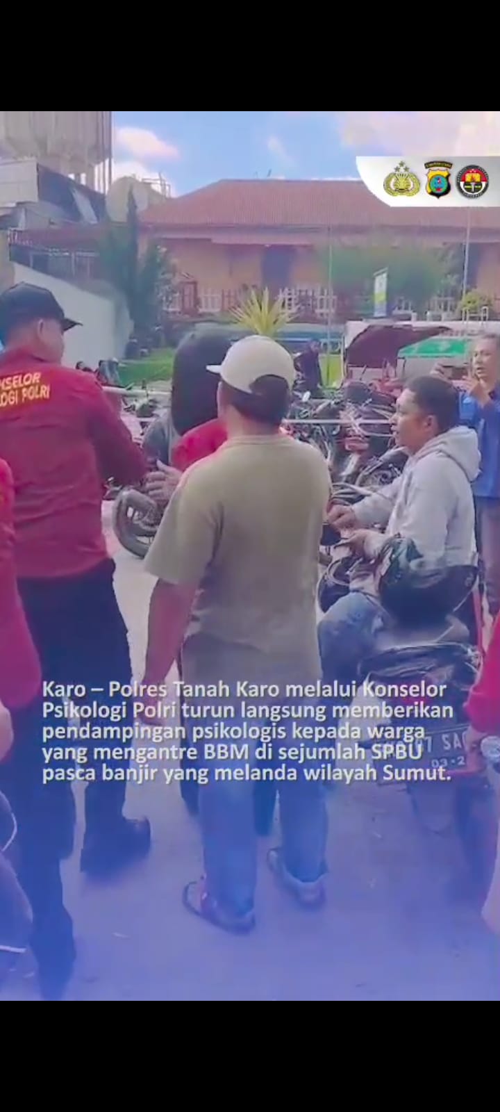 Karo – Blusuk.online – Polres Tanah Karo melalui Konselor Psikologi Polri memberikan pendampingan psikologis kepada masyarakat yang mengantre Bahan Bakar Minyak (BBM) di sejumlah SPBU pasca bencana banjir yang melanda beberapa wilayah di Sumatera Utara.