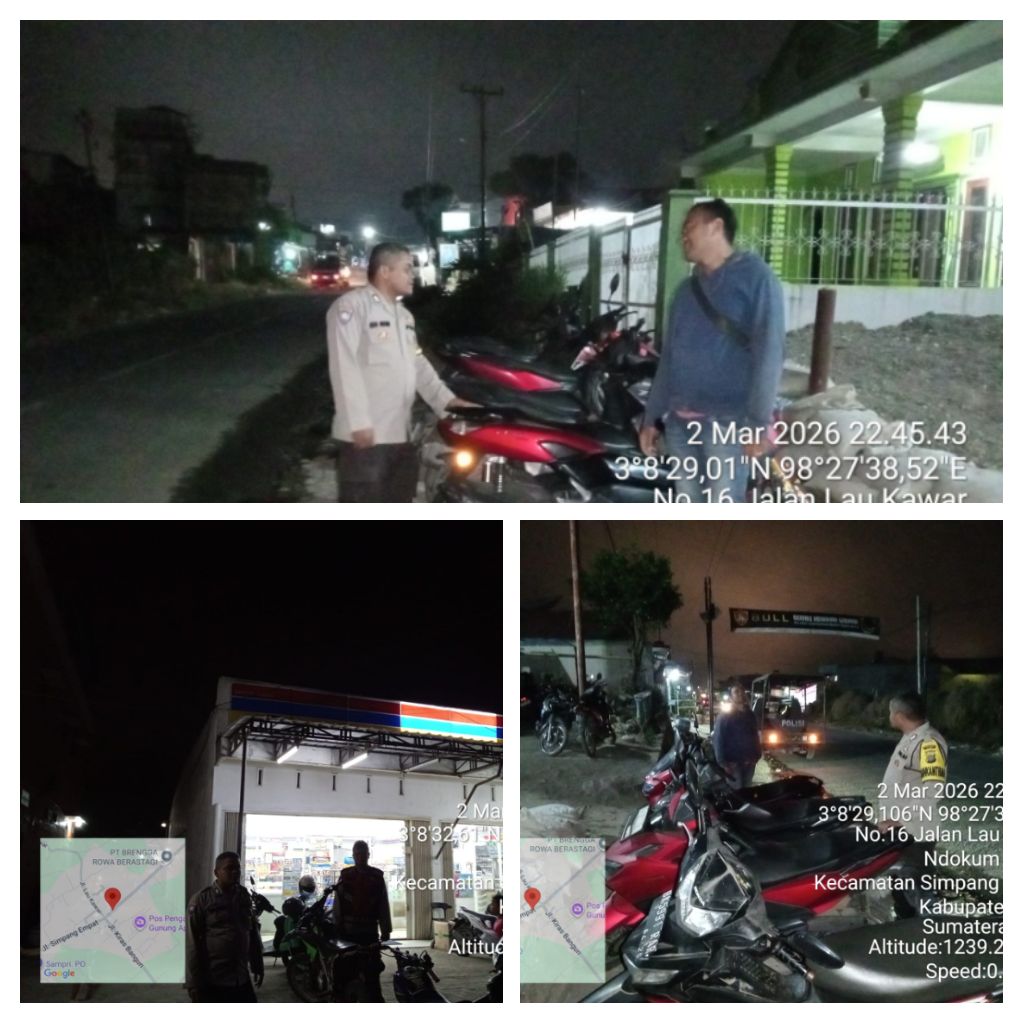 Karo – Blusuk.online – Dalam rangka menjaga situasi keamanan dan ketertiban masyarakat (kamtibmas) selama bulan suci Ramadan 1447 H, jajaran Polsek Simpang Empat melaksanakan Kegiatan Rutin Yang Ditingkatkan (KRYD), Senin (2/3/2026) mulai pukul 22.00 WIB hingga selesai.