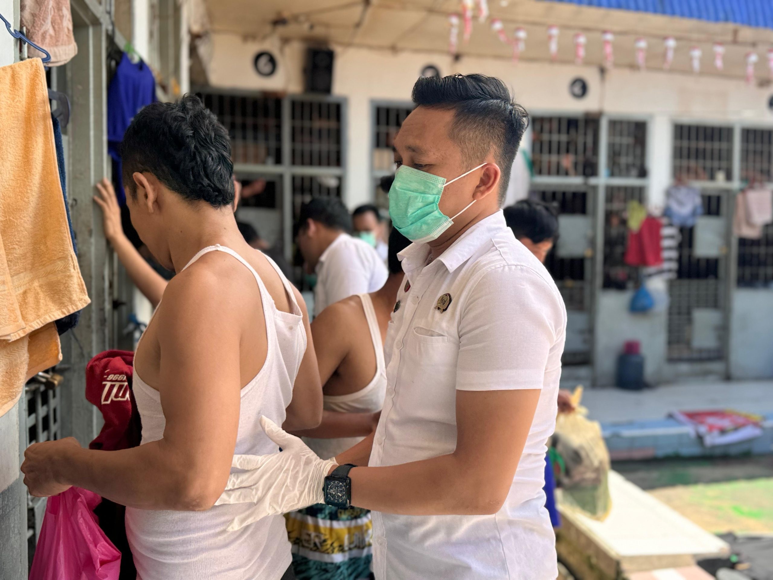Dalam pelaksanaannya, petugas membuka kamar hunian dan mengeluarkan warga binaan satu per satu untuk dilakukan pemeriksaan badan.