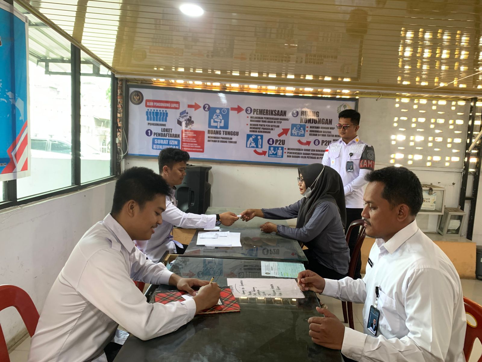 Dalam simulasi tersebut, seluruh tahapan layanan diperagakan secara menyeluruh, mulai dari kedatangan pengunjung, proses pendaftaran, verifikasi data, pemeriksaan keamanan, hingga pelaksanaan kunjungan. Setiap petugas menjalankan tugasnya sesuai dengan standar operasional prosedur (SOP) yang telah ditetapkan.