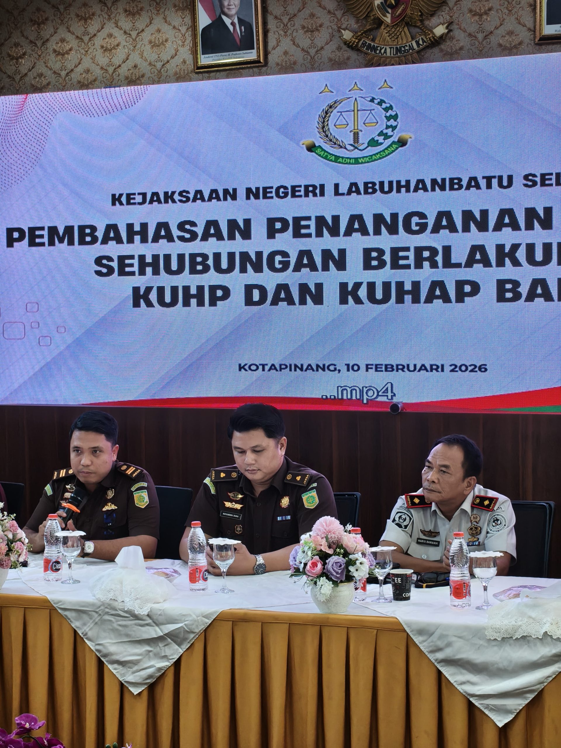 Sementara itu, Kepala Kejaksaan Negeri Labuhanbatu Selatan menyoroti pentingnya kesamaan persepsi dalam penerapan ketentuan peralihan, asas lex mitior, serta strategi penanganan perkara yang sedang berjalan guna menjamin kepastian hukum dan rasa keadilan.