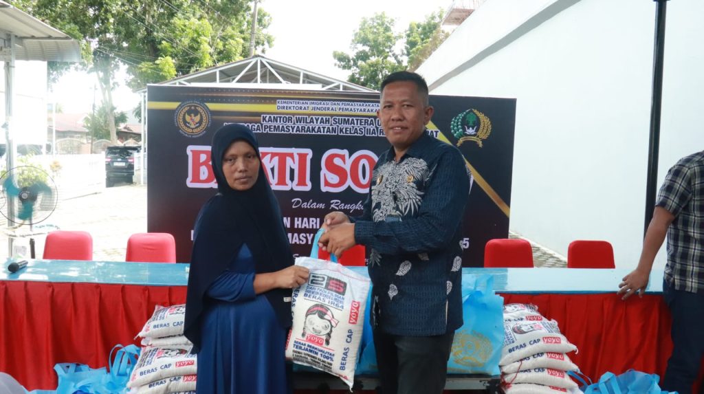 Lapas Rantauprapat Gelar Bakti Sosial Bagikan Paket Sembako dalam Rangka Hari Bakti Kemenkumham 2025