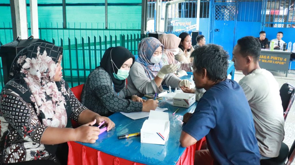Rantauprapat, 3 Oktober 2025 — Blusuk.online – Dalam upaya mendukung peningkatan derajat kesehatan di lingkungan pemasyarakatan, Lembaga Pemasyarakatan (Lapas) Kelas IIA Rantauprapat bekerja sama dengan Dinas Kesehatan dan Puskesmas Sigambal melaksanakan kegiatan skrining penyakit menular bagi seluruh Warga Binaan Pemasyarakatan (WBP). Kegiatan ini menitikberatkan pada deteksi dini penyakit Tuberkulosis (TBC), Human Immunodeficiency Virus (HIV), dan Sifilis.