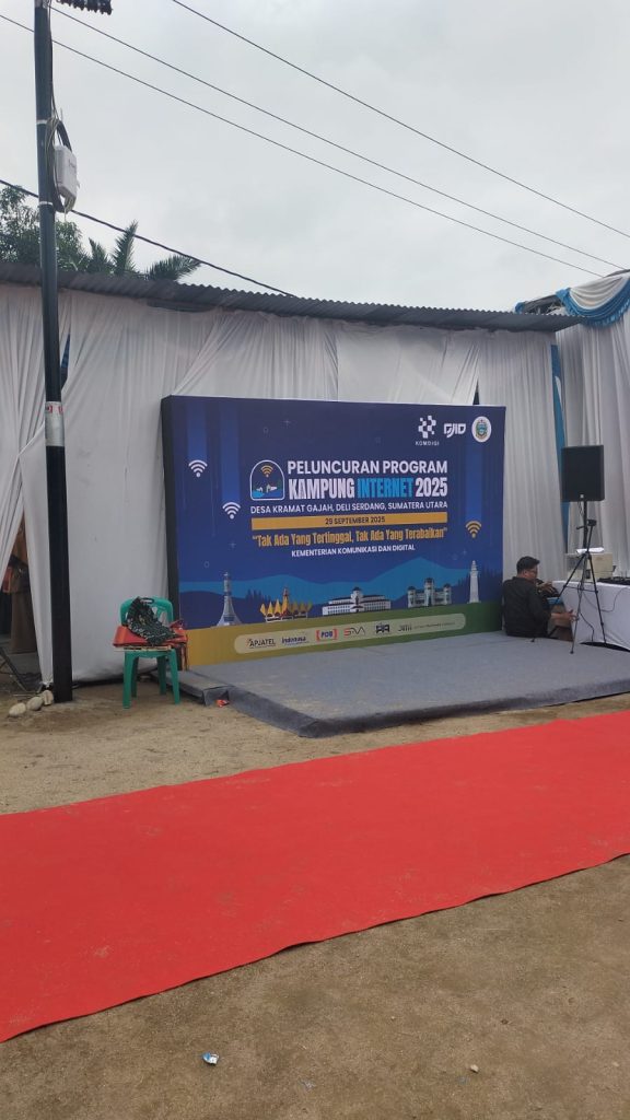 DELI SERDANG, blusuk online– Menteri Komunikasi dan Digital (Menkomdigi) Ibu Hj. Mutia Vieada Hafiz, B.Eng., M.IP., secara resmi meluncurkan Program Kampung Internet melalui Bantuan Pemerintah Penyediaan Akses Internet Pitalebar (Fixed Broadband/FBB), Senin (29/9/2025), di Lapangan Balai Desa Kramat Gajah, Kecamatan Galang, Kabupaten Deli Serdang, Sumatera Utara.