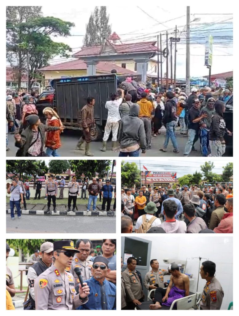 Mendengar Kabar Penangkapan PS tersebut, Massa Kemudian Berkumpul dan Mendatangi Mapolres Dairi untuk Menuntut Pembebasan Rekan Mereka.