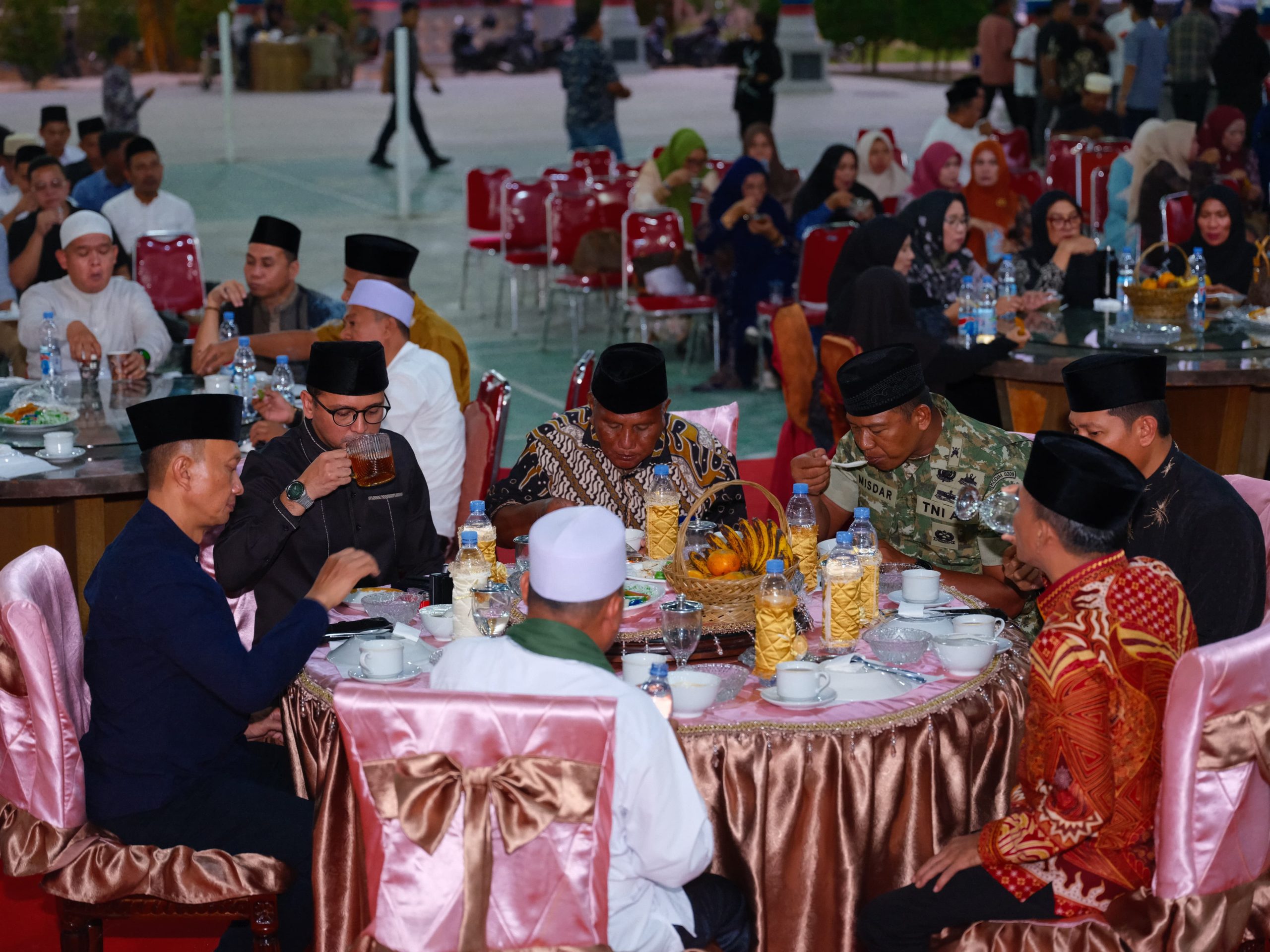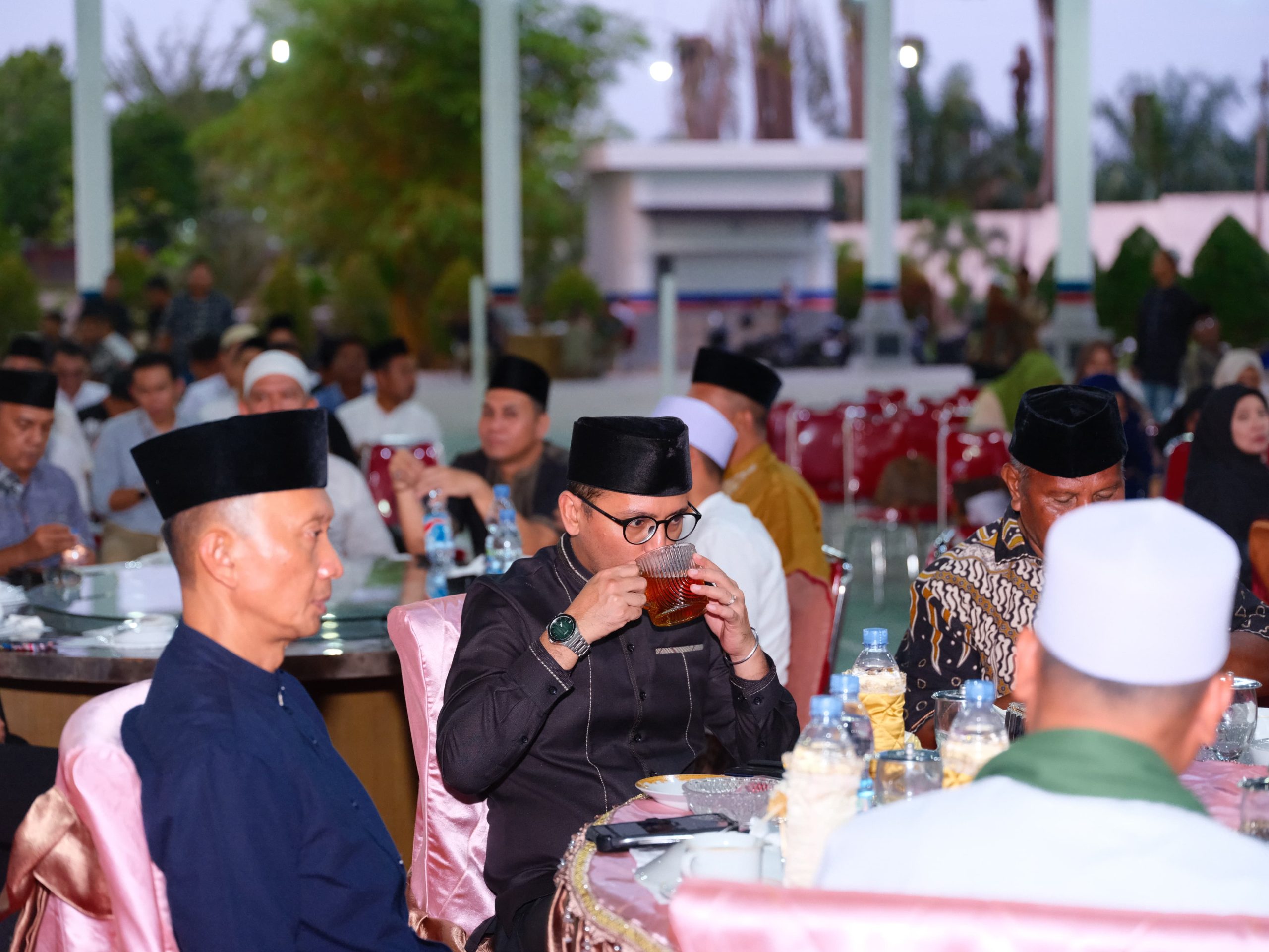 Suasana kebersamaan semakin terasa ketika seluruh hadirin melaksanakan buka puasa bersama, menandai indahnya kebersamaan dalam bingkai keimanan dan persaudaraan di bulan suci Ramadhan.