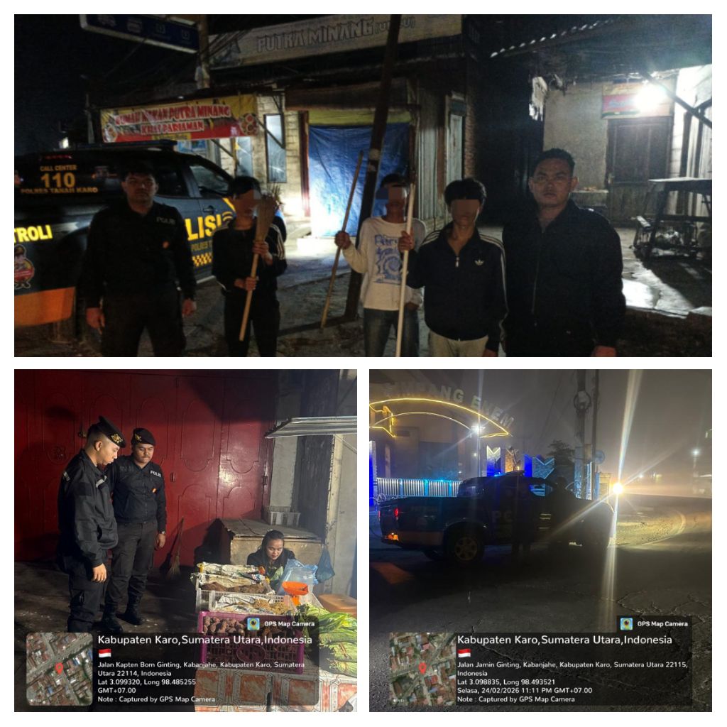 Karo – Blusuk.online – Dalam upaya menjaga situasi keamanan dan ketertiban masyarakat (kamtibmas) tetap kondusif, personel Satuan Samapta Polres Tanah Karo melaksanakan patroli stasioner pada Rabu (25/2/2026) dini hari sekitar pukul 02.00 WIB.