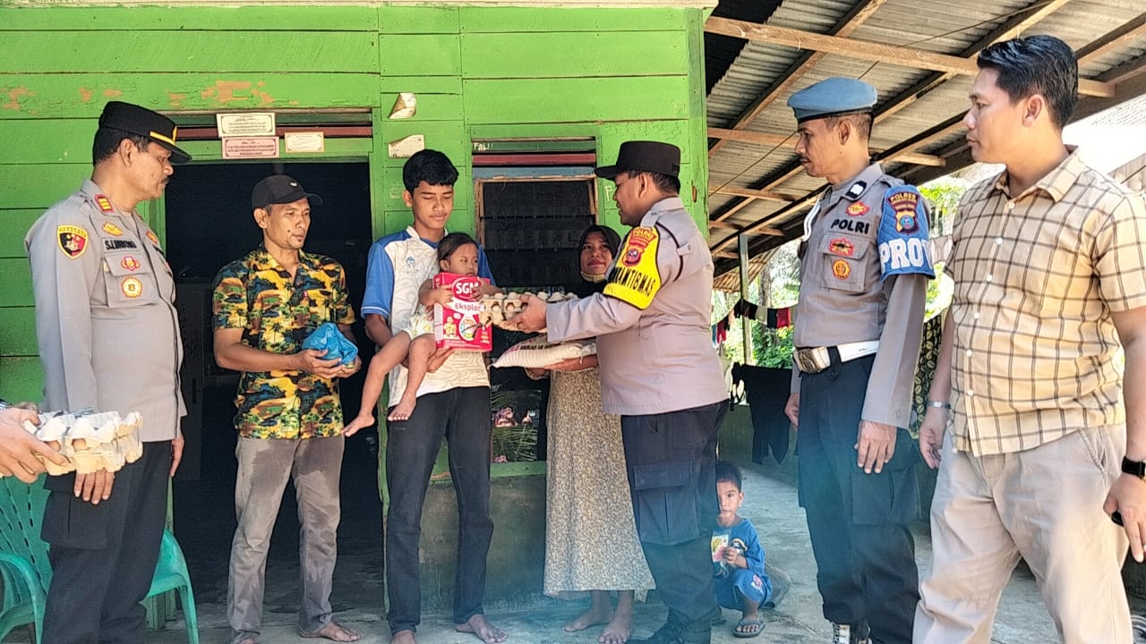 Sebagai bentuk dukungan terhadap program pemerintah dalam penanganan dan pencegahan stunting, Kapolsek Sei Kanan, AKP S. Limbong, bersama jajaran personel dan perangkat Desa Sabungan, menyalurkan bantuan sembako kepada anak-anak penderita stunting di Kecamatan Sungai Kanan, Kabupaten Labuhanbatu Selatan.
