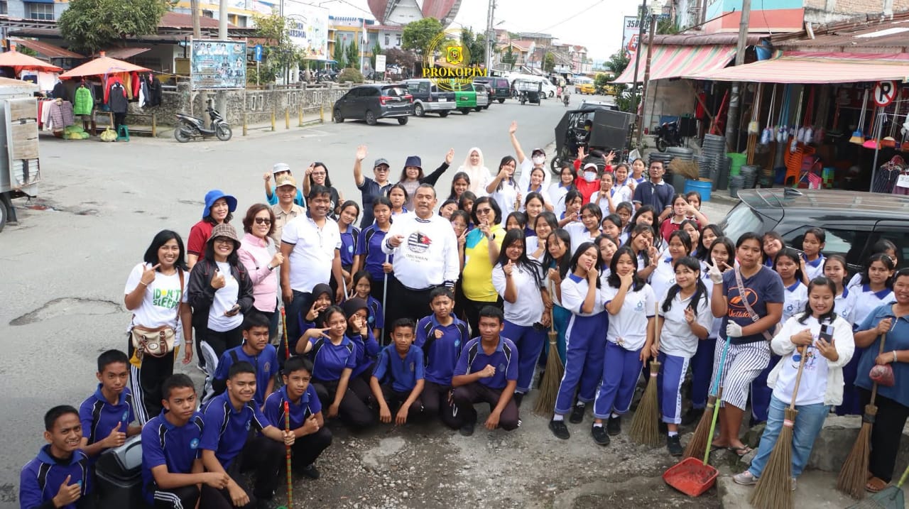 Pelaksanaan Kegiatan Gotong Royong Serentak Bersama ASN dari Seluruh Dinas, kecamatan, kelurahan dan Sekolah di seputaran Kota Sidikalang ini Dimonitor Langsung oleh, Bupati Dairi, Ir. Vickner Sinaga, MM.