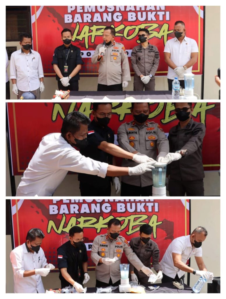Adapun Barang Bukti tersebut Dimusnahkan dengan cara di Blender, dan Air Bekas Pemusnahan itu dibuang ke Kloset Kamar Mandi. Total Barang Bukti yang Dimusnahkan sebesar, 697,7 Gram.