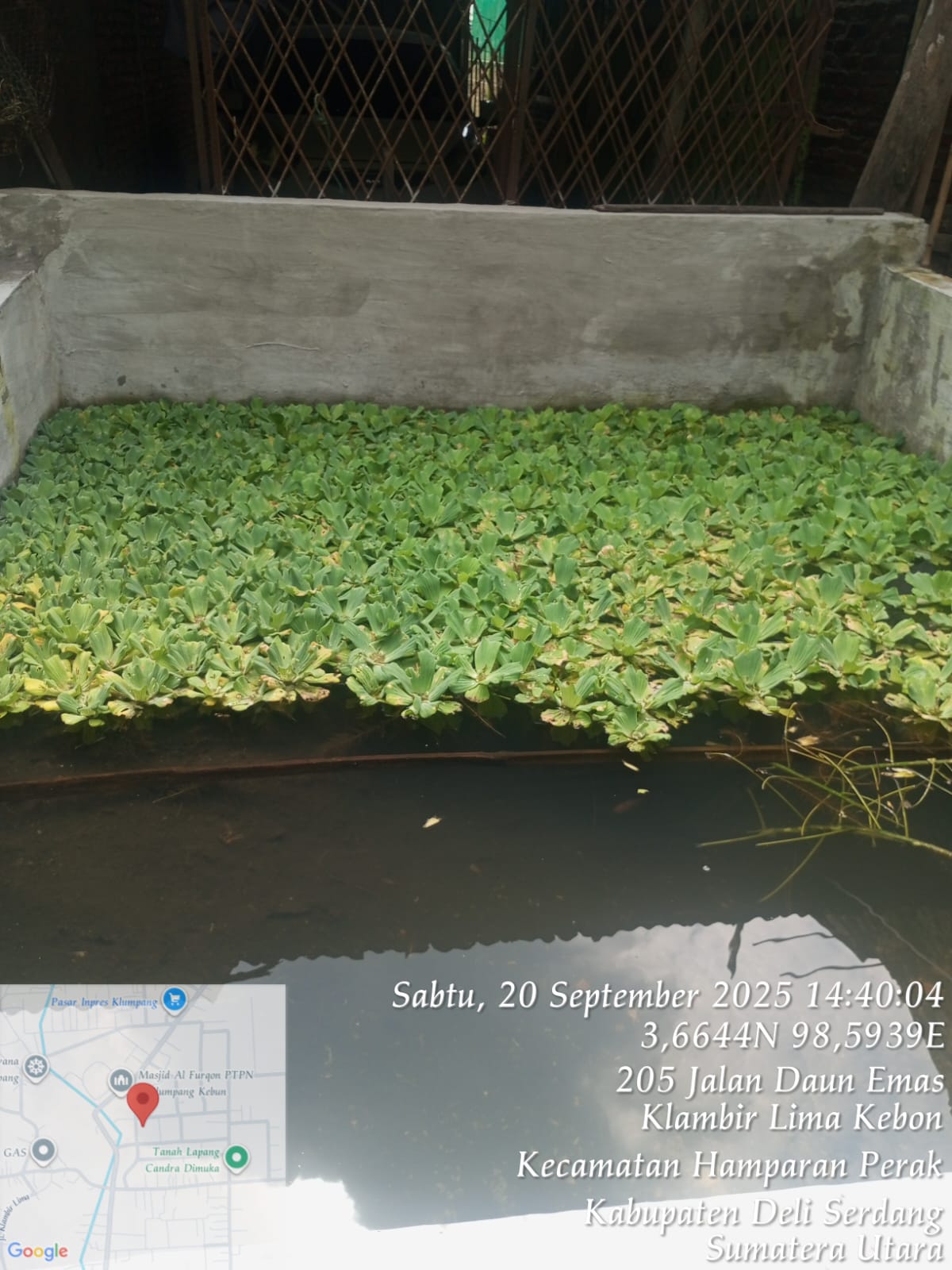 HAMPRAN PERAK , blusuk online– Pengurus Komunitas Delisa melakukan peninjauan ke kolam pemeliharaan ikan air tawar berbasis pemanfaatan air hujan di Desa Klumpang Kebun, Kecamatan Hamparan Perak, Sabtu (20/9/2025).