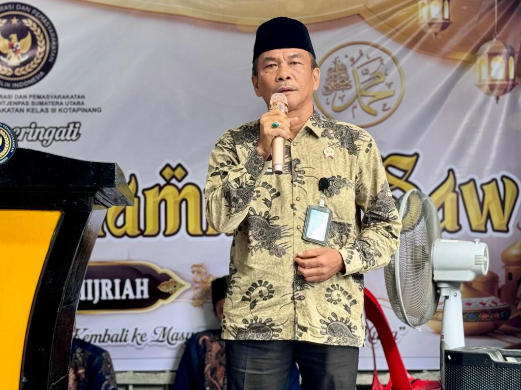 Kepala Lapas Kotapinang, Haris Damanik, S.H, menegaskan bahwa peringatan Maulid Nabi bukan sekadar kegiatan seremonial, melainkan sarana penting untuk memperkuat pembinaan mental dan spiritual warga binaan.