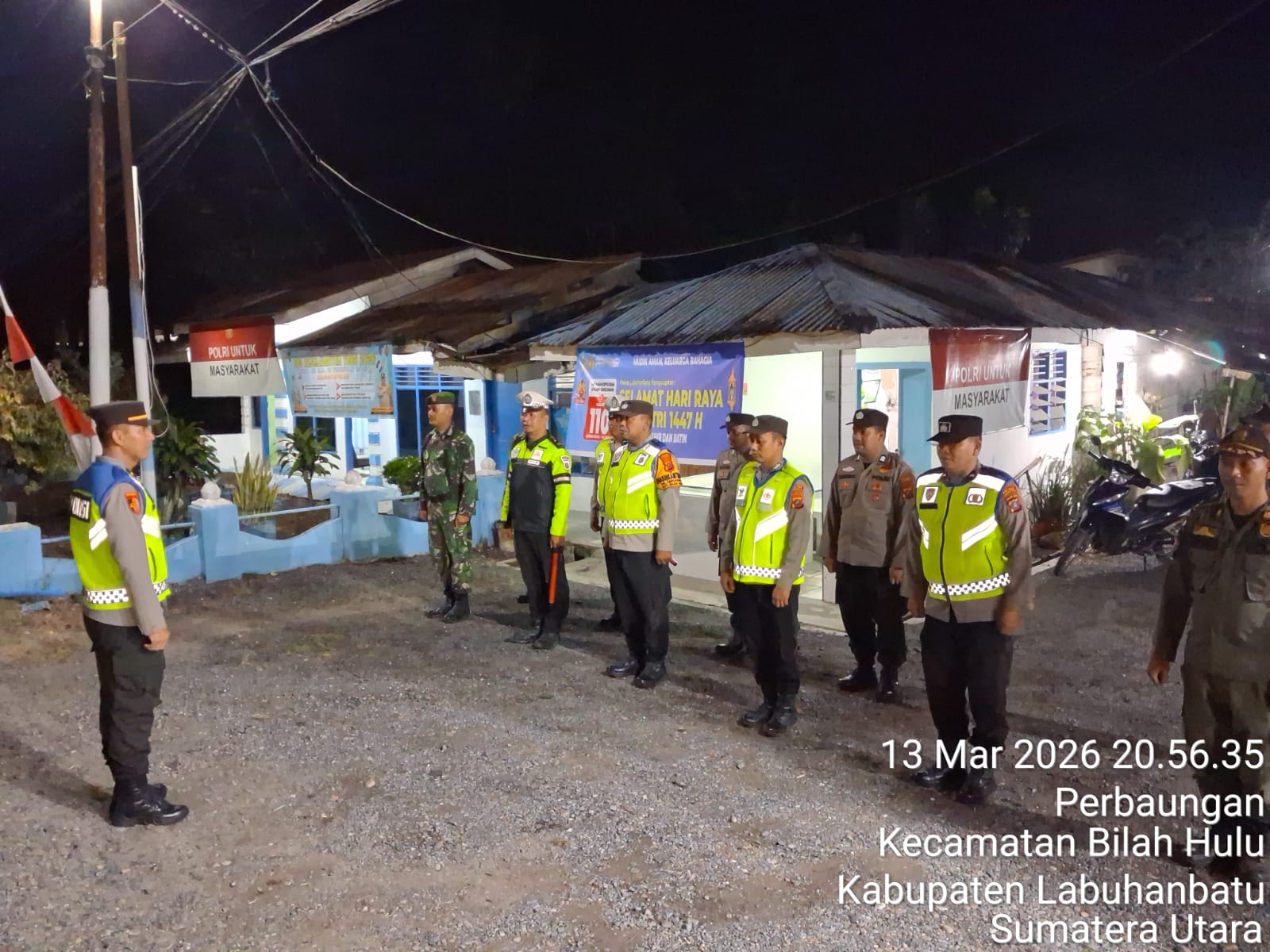 Labuhanbatu – Blusuk.online – Personel Polres Labuhanbatu yang bertugas di Pos Pelayanan (Pos Yan) I Aek Nabara melaksanakan apel malam dalam rangka pengamanan Operasi Ketupat Toba 2026 untuk perayaan Idul Fitri 1447 Hijriah / 2026 M, Jumat (13/3/2026) malam.