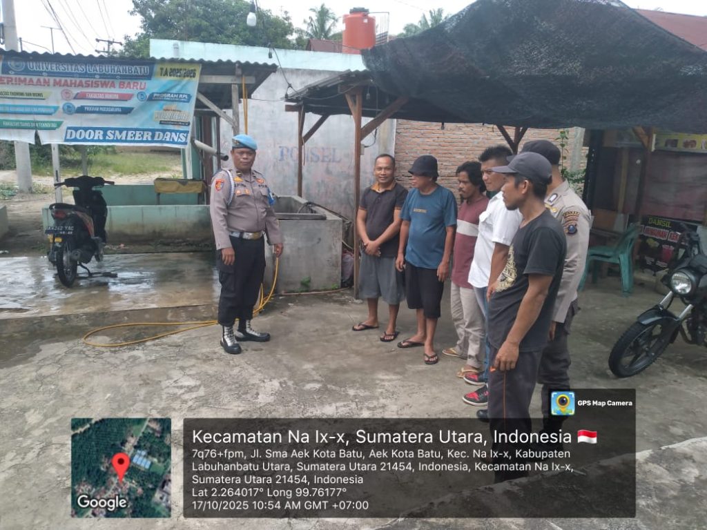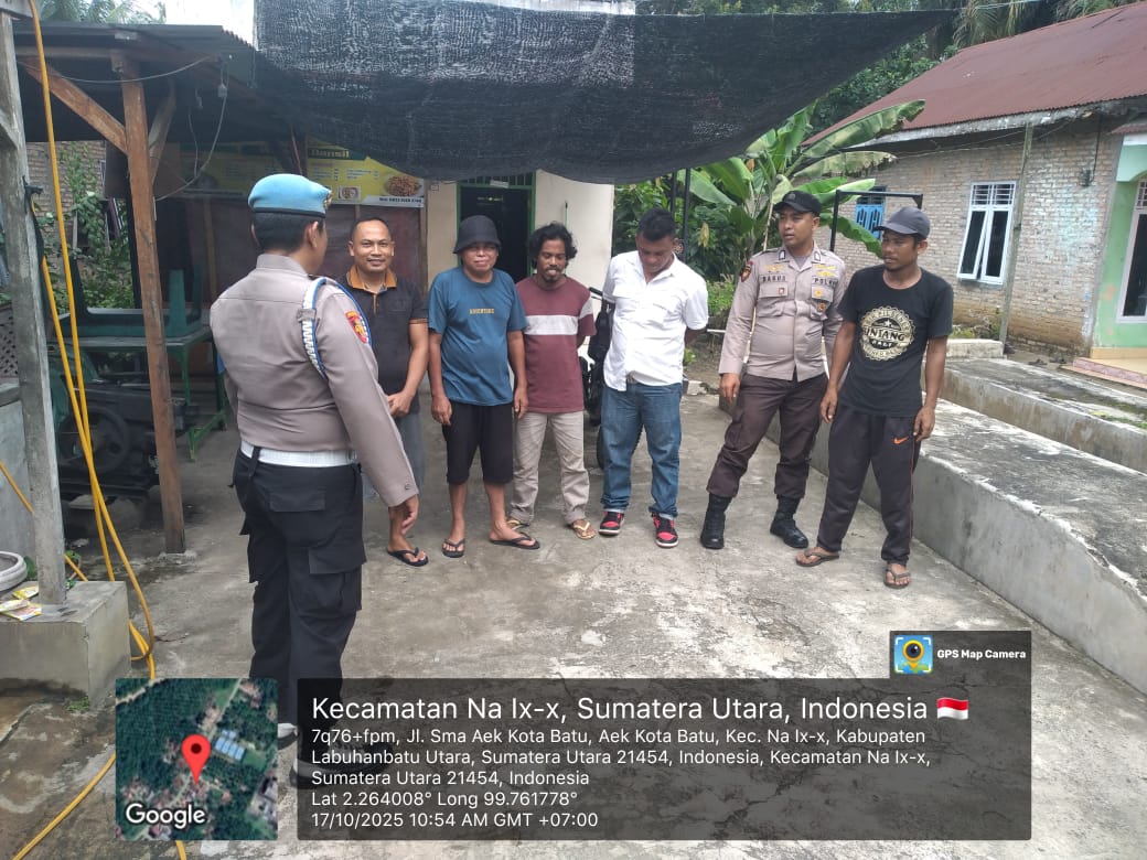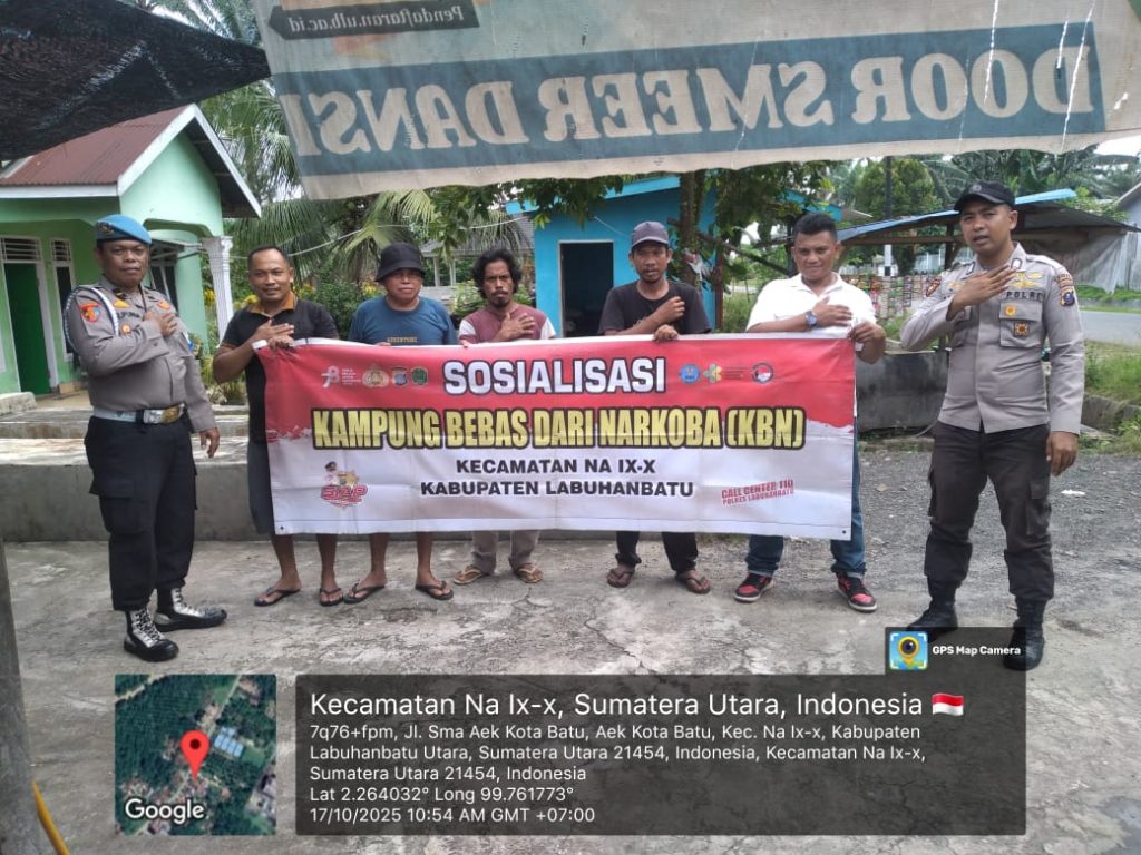 Personel Posko Kampung Bebas dari Narkoba (KBN) Polsek Na IX-X, Polres Labuhanbatu, melaksanakan patroli sekaligus memberikan imbauan kepada masyarakat di Lingkungan Sukaramai, Kelurahan Aek Kota Batu, Kecamatan Na IX-X, Kabupaten Labuhanbatu Utara, Jumat (17/10/2025).