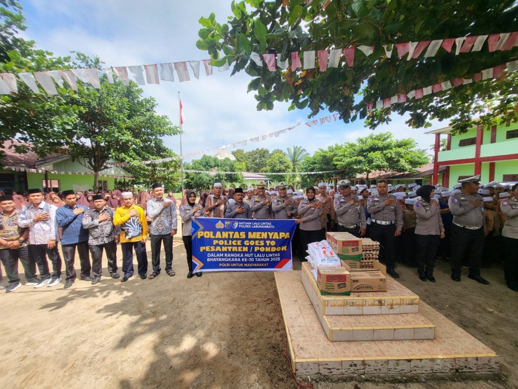 tribratanewspolreslabuhanbatu – Blusuk.online – Dalam rangka menyambut Hari Ulang Tahun Lalu Lintas Bhayangkara ke-70 Tahun 2025, Satuan Lalu Lintas Polres Labuhanbatu yang dipimpin IPTU M. Rizal, menggelar kegiatan Polantas Menyapa Goes to Pondok Pesantren pada Jumat (12/09/2025) di Pondok Pesantren Amiruddiniyah, Jalan Purbasari, Desa Bandar Tinggi, Kecamatan Bilah Hulu, Kabupaten Labuhanbatu.