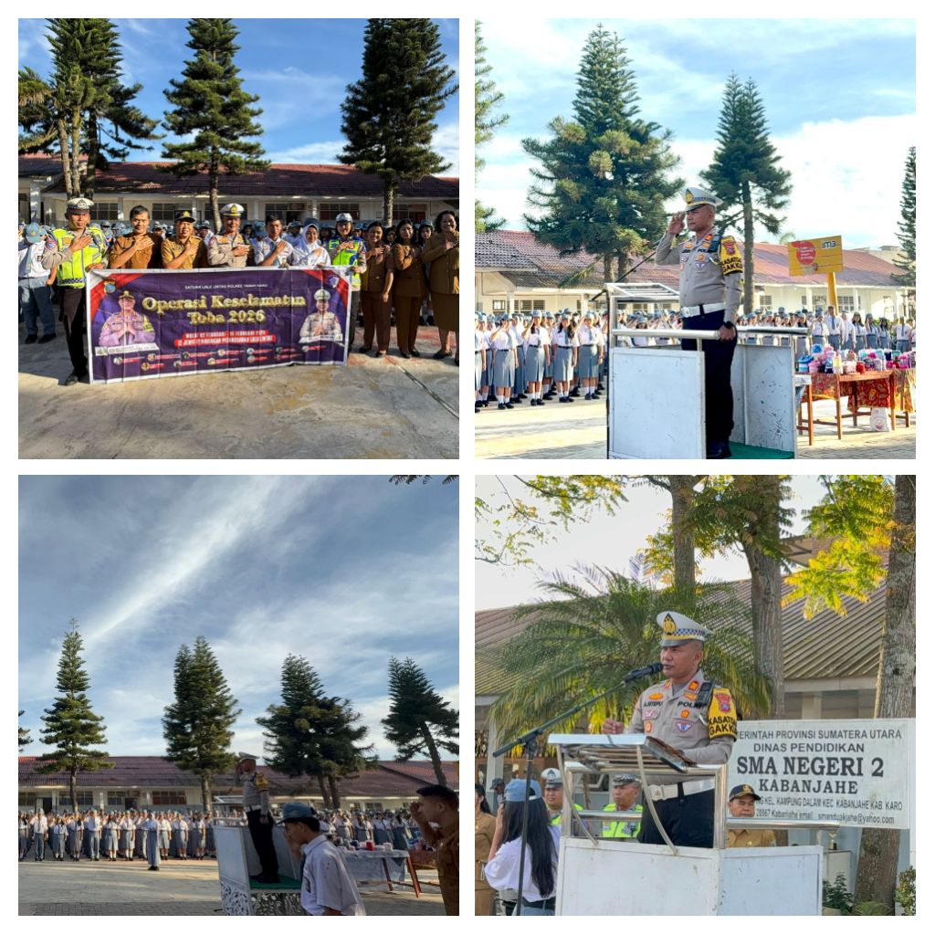 Karo – Blusuk.online – Satuan Lalu Lintas Polres Tanah Karo melaksanakan kegiatan Police Go To School dalam rangka Operasi Kepolisian Kewilayahan Keselamatan Toba 2026. Kegiatan tersebut berlangsung pada Senin (9/2/2026) mulai pukul 07.00 WIB hingga selesai di SMA Negeri 2 Kabanjahe, Kabupaten Karo.