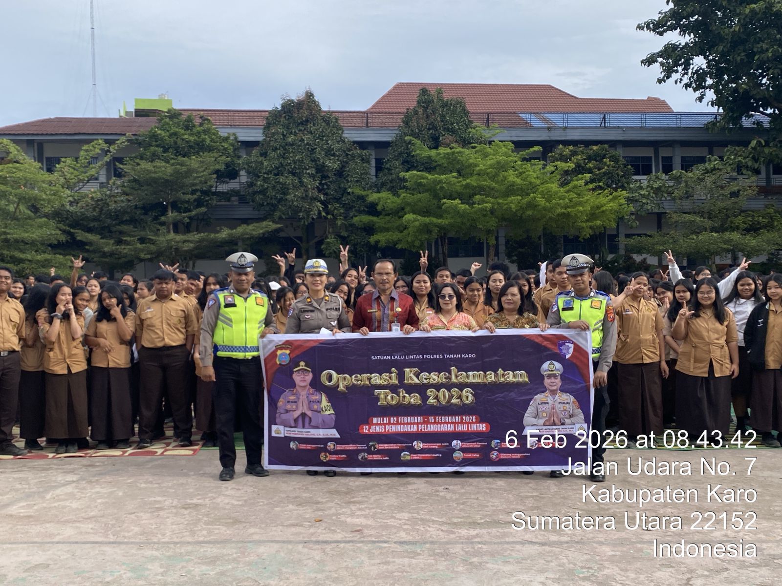 Dalam pelaksanaannya, personel Satlantas Polres Tanah Karo memberikan penyuluhan dan sosialisasi Operasi Keselamatan Toba 2026 kepada Kepala Sekolah, dewan guru, serta para siswa dan siswi SMA Negeri 1 Berastagi.