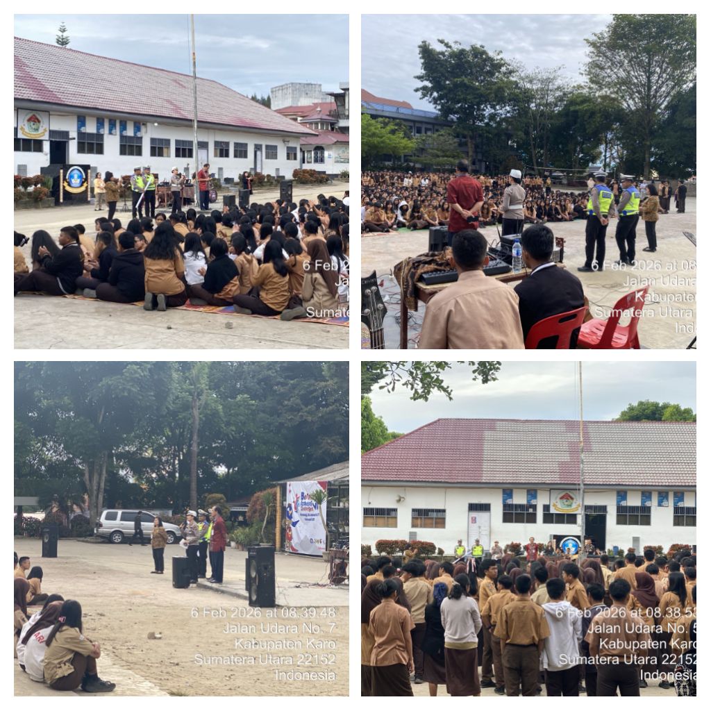 Berastagi, Karo – Blusuk.online – Dalam rangka Operasi Kepolisian Kewilayahan Keselamatan Toba 2026, Satuan Lalu Lintas Polres Tanah Karo melaksanakan kegiatan Police Go To School di SMA Negeri 1 Berastagi, Kabupaten Karo, Jumat (6/2/2026) pagi.