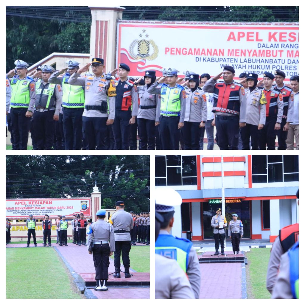 polreslabuhanbatu – Blusuk.online – Dalam rangka memastikan kesiapan pengamanan menyambut malam pergantian Tahun Baru 2026, Polres Labuhanbatu menggelar Apel Kesiapan Pengamanan di Lapangan Apel Mapolres Labuhanbatu, Jalan MH. Thamrin, Rantauprapat, Kabupaten Labuhanbatu, Rabu (31/12/2025). Pengamanan ini mencakup wilayah Kabupaten Labuhanbatu dan Kabupaten Labuhanbatu Utara.