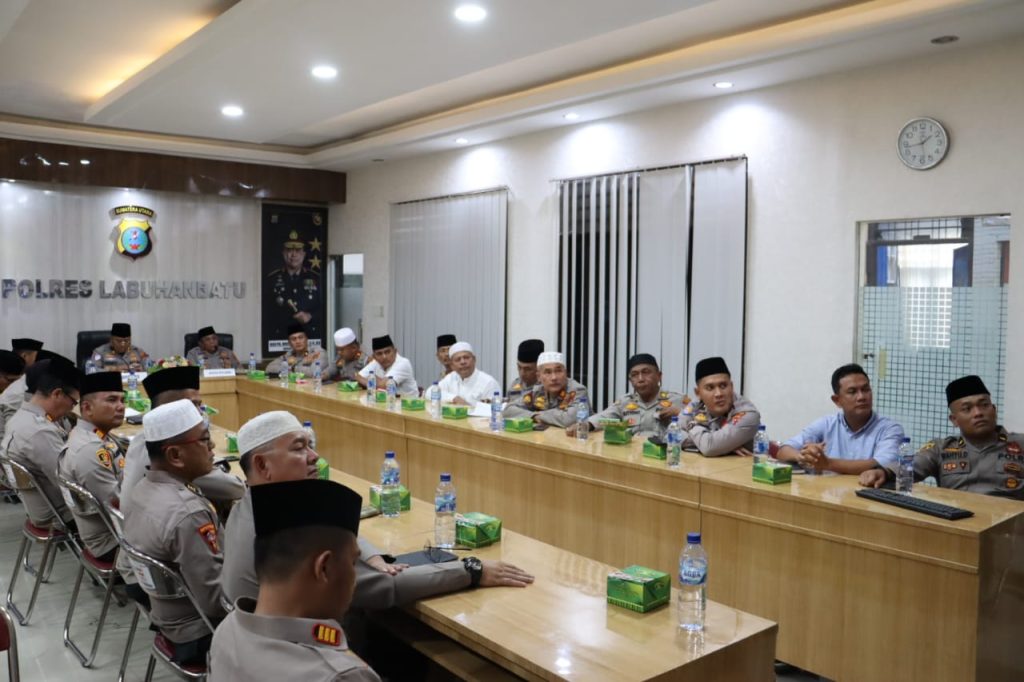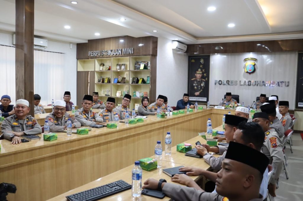Turut hadir dalam kegiatan ini, Kapolres Labuhanbatu AKBP Choky Sentosa Meliala, S.I.K., S.H., M.H., Wakapolres Kompol H. Matondang, S.H., M.H., para pejabat utama, serta seluruh personel Polres Labuhanbatu.