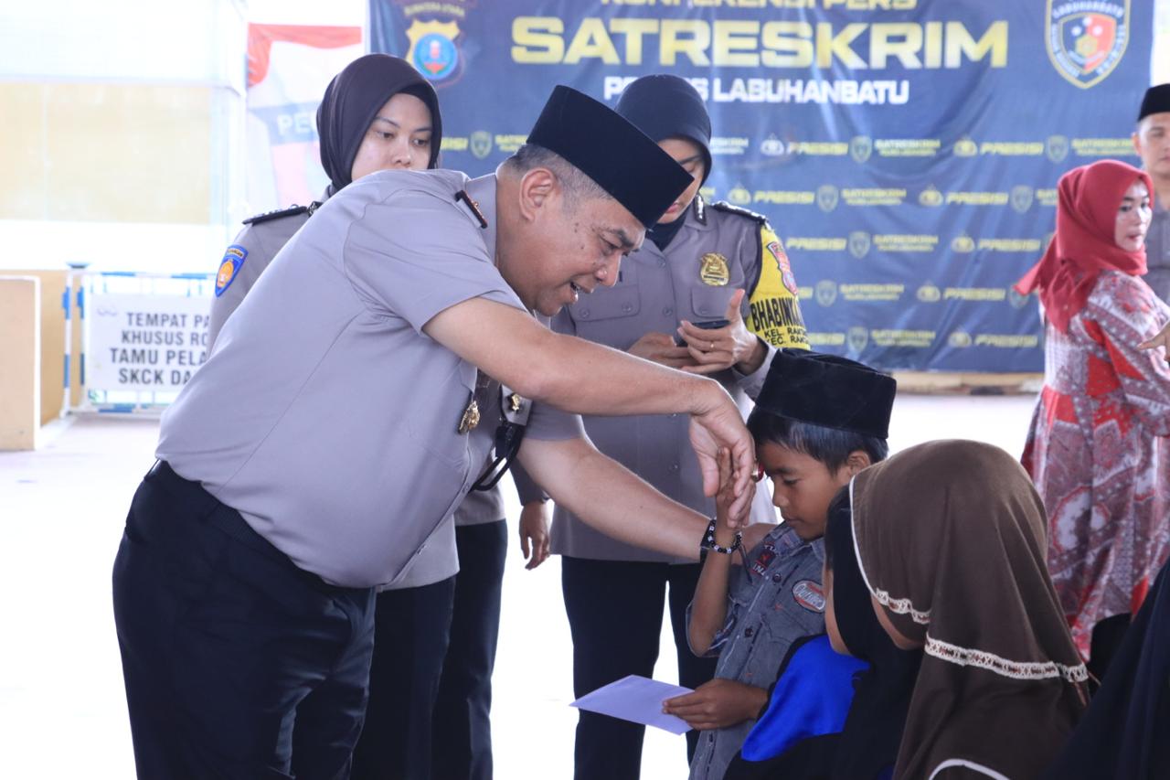 Sebagai wujud kepedulian sosial, Polres Labuhanbatu menyerahkan tali asih kepada anak yatim secara langsung oleh Wakapolres, yang disambut hangat oleh peserta dan tokoh agama.