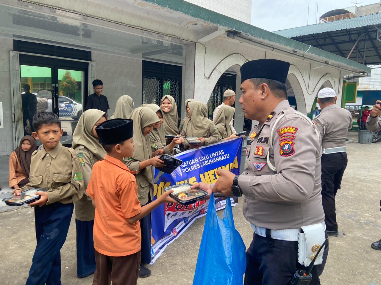 Polres Labuhanbatu Gelar “Jumat Berkah” dengan Membagikan Nasi Kotak untuk Pengguna Jalan