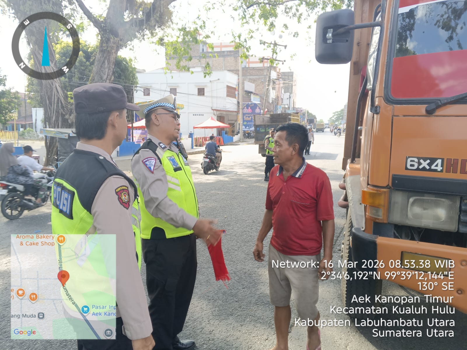 Labuhanbatu Utara – Blusuk.online – Personel Pos Pengamanan (Pospam) 2 Aek Kanopan Polres Labuhanbatu melaksanakan kegiatan sosialisasi dan imbauan kepada para pengemudi kendaraan angkutan barang bersumbu tiga ke atas agar tidak beroperasi sementara selama pelaksanaan Operasi Ketupat 2026. Kegiatan tersebut berlangsung di wilayah Aek Kanopan, Kabupaten Labuhanbatu Utara, Senin (16/3/2026).