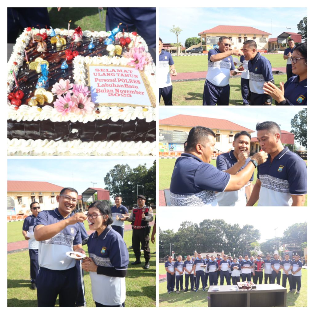 “Perayaan sederhana ini menjadi wujud perhatian dan kebersamaan kita sebagai keluarga besar Polres Labuhanbatu. Semoga personel yang berulang tahun selalu diberi kesehatan, keselamatan, serta kesuksesan dalam menjalankan tugas,” ujar KOMPOL H. Matondang.