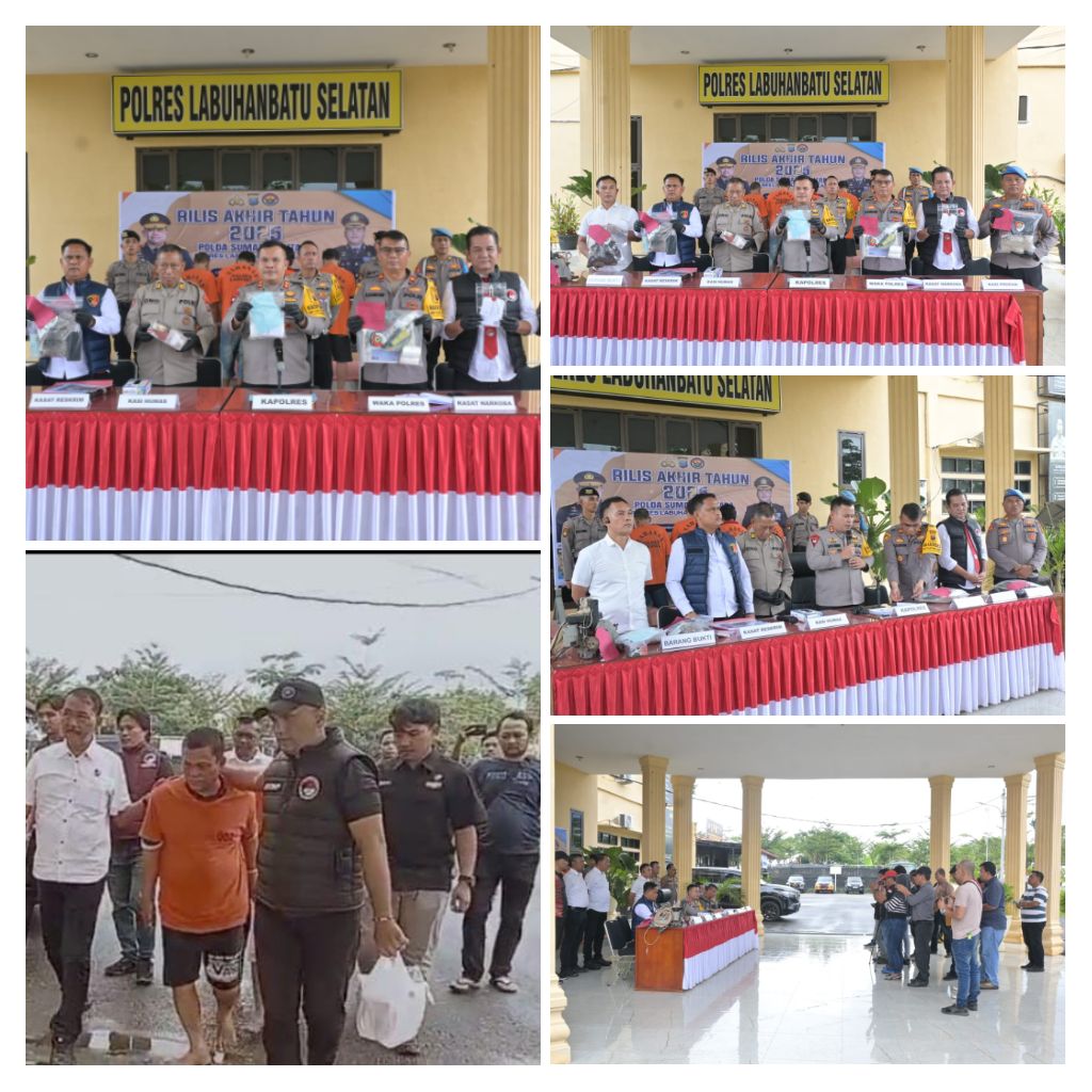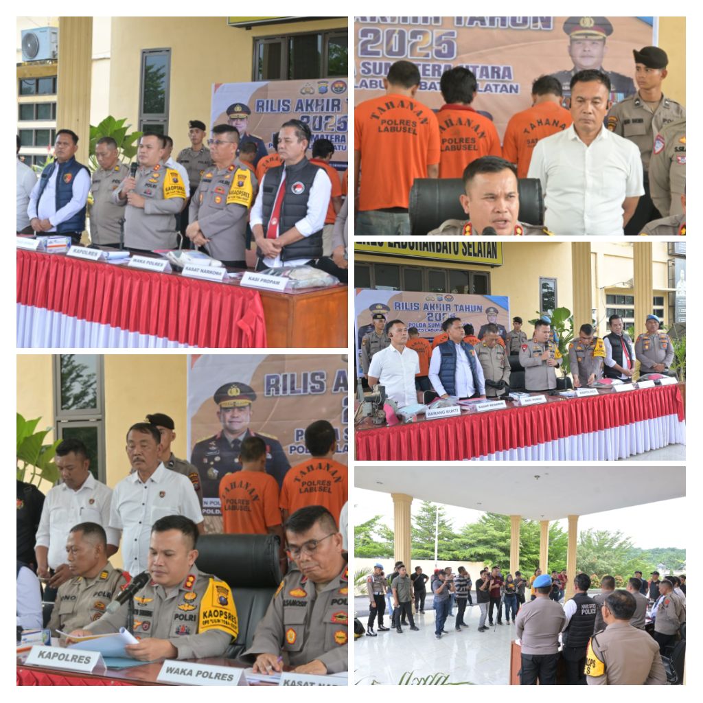 Labuhanbatu Selatan – Blusuk.online – Polres Labuhanbatu Selatan menggelar Konferensi Pers (Press Release) Akhir Tahun 2025 pada Selasa, 30 Desember 2025, sekira pukul 14.00 WIB, bertempat di halaman depan Mapolres Labuhanbatu Selatan. Kegiatan ini dilaksanakan sebagai bentuk transparansi Polri kepada masyarakat terkait capaian kinerja, inovasi, serta evaluasi pelaksanaan tugas kepolisian selama Tahun 2025.