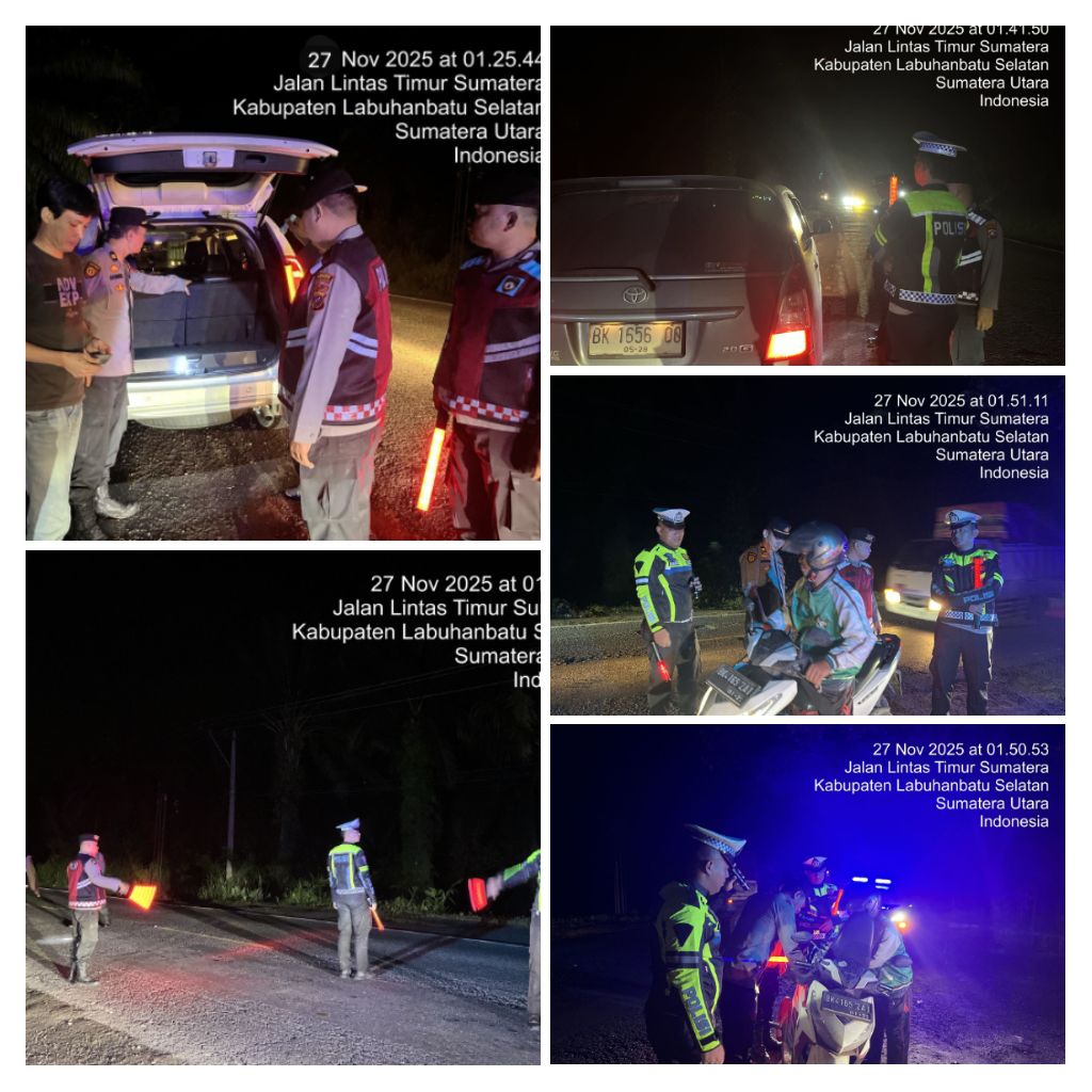 Labuhanbatu Selatan –Blusuk.online – Polres Labuhanbatu Selatan melaksanakan razia dini hari pada Kamis, 27 November 2025, untuk mengantisipasi narkoba, 3C (Curat, Curas, Curanmor), dan tindak pidana lainnya. Kegiatan dimulai pukul 01.00 WIB dan difokuskan di kawasan Titi Sijambu, Sisumut, jalur penghubung Kota Pinang–Rantau Prapat yang dikenal rawan kejahatan malam hari.
