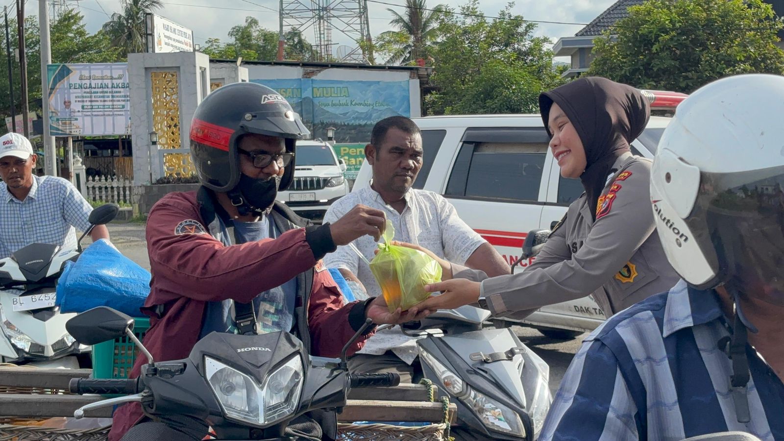 Dalam rangka menyemarakkan Bulan Suci Ramadhan 1447 H Tahun 2026, Polres Pidie Jaya menggelar kegiatan sosial pembagian takjil kepada masyarakat di Jalan Banda Aceh–Medan, tepatnya di depan Masjid Islamic Center Gampong Raya, Kecamatan Trienggadeng, Kabupaten Pidie Jaya, Selasa (24/02/2026) pukul 17.30 WIB.