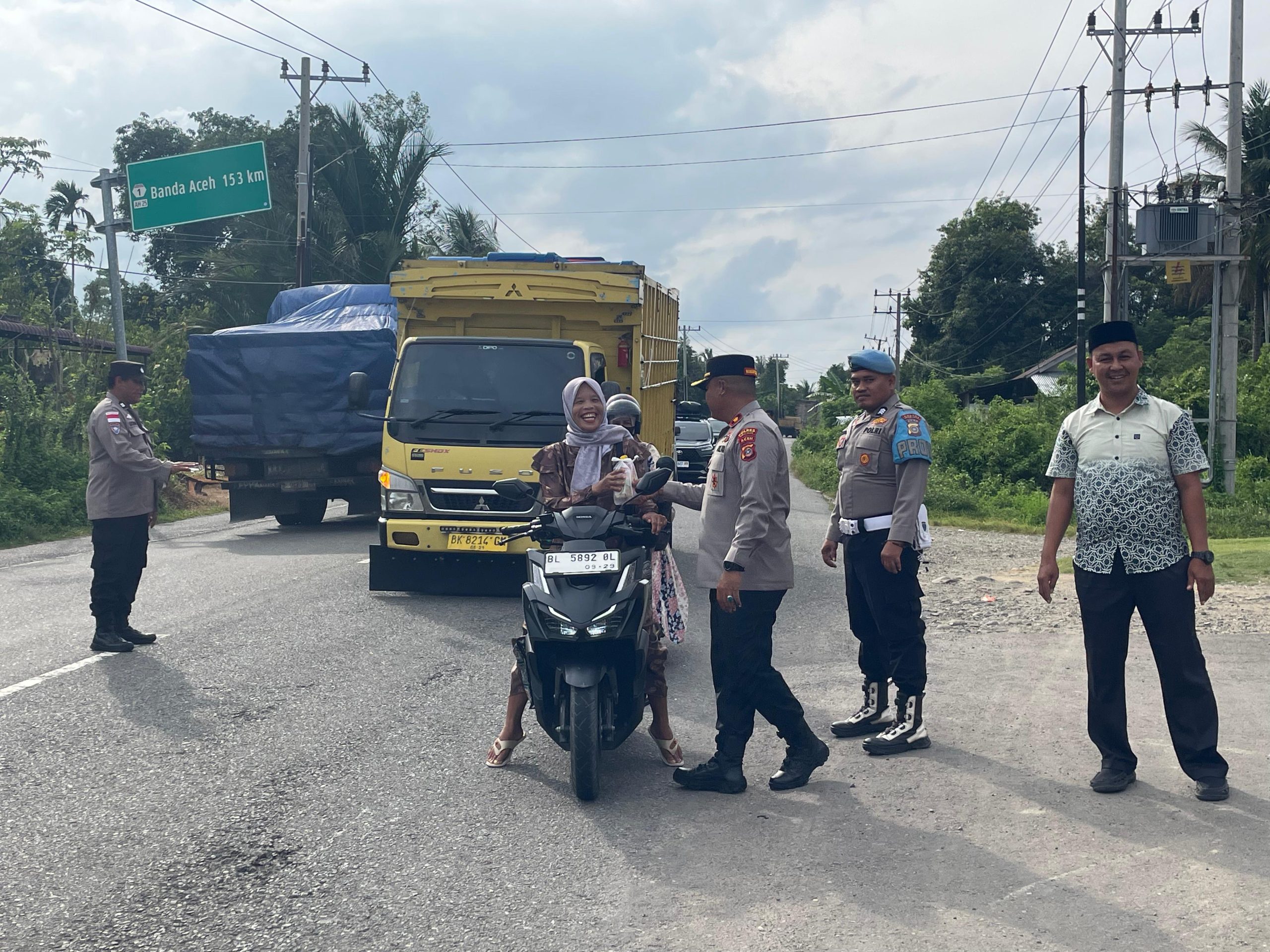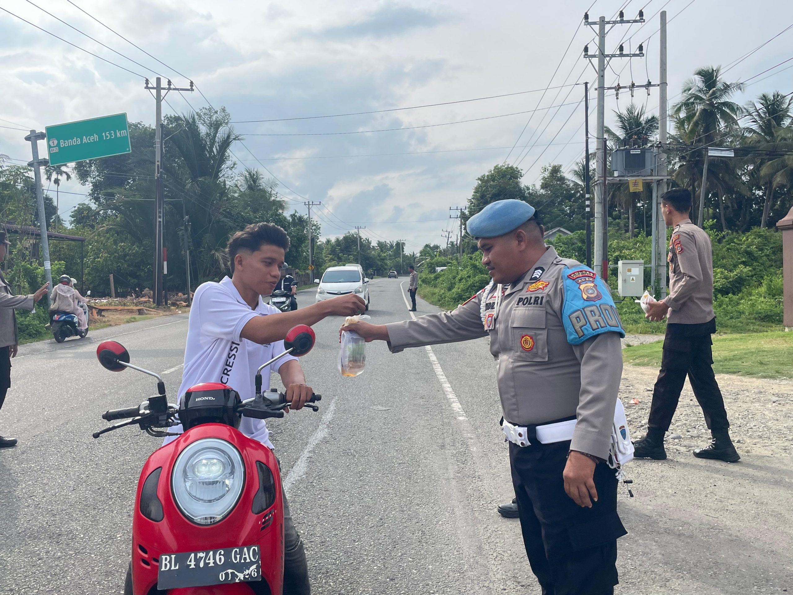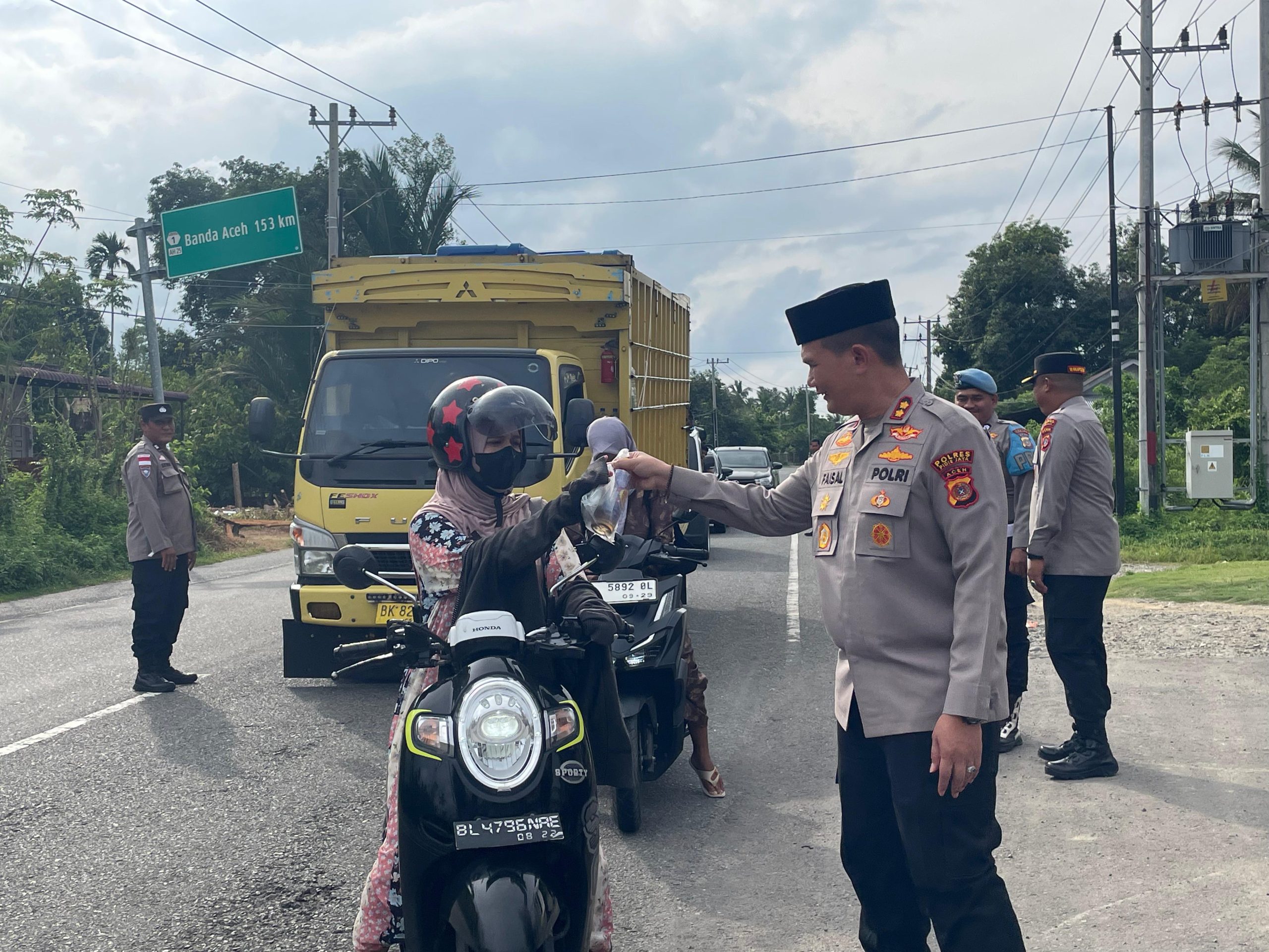 Sebanyak 200 paket takjil dibagikan kepada pengendara roda dua, roda empat, serta masyarakat yang melintas menjelang waktu berbuka puasa. Kegiatan berlangsung tertib dengan tetap memperhatikan kelancaran arus lalu lintas di jalur utama Banda Aceh–Medan tersebut.