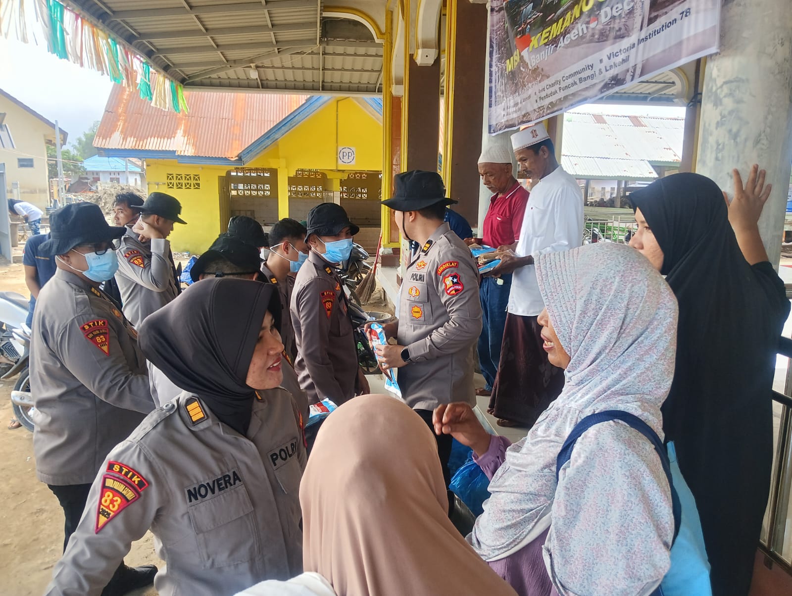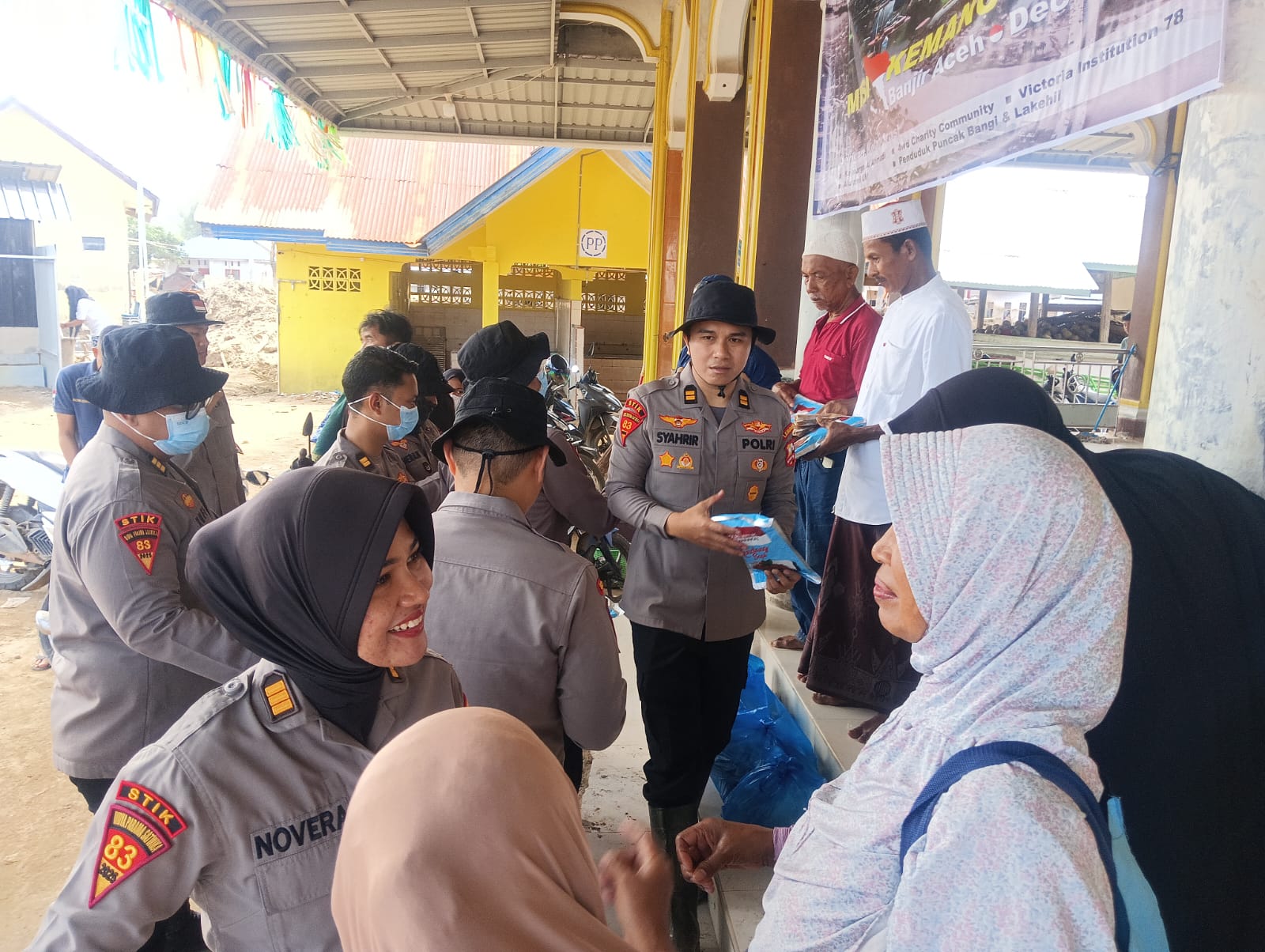 Polres Pidie Jaya dan Mahasiswa STIK Angkatan 83/WPS Salurkan Bansos Kapolri ke Delapan Titik Pengungsian
