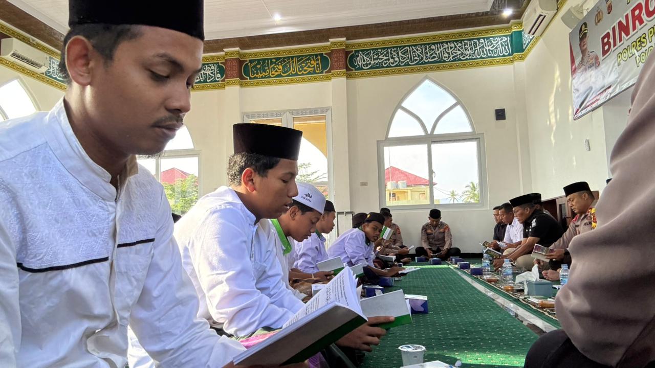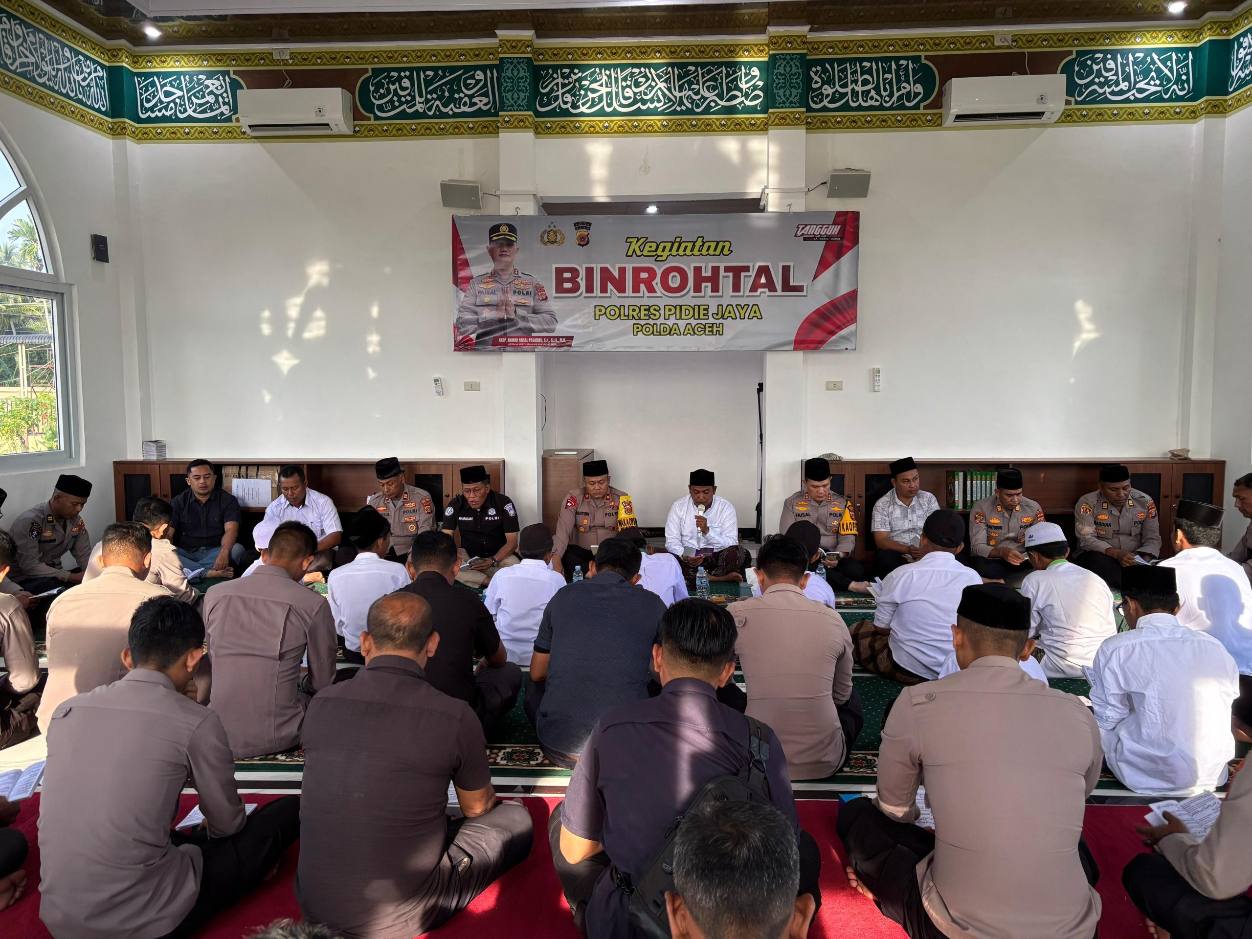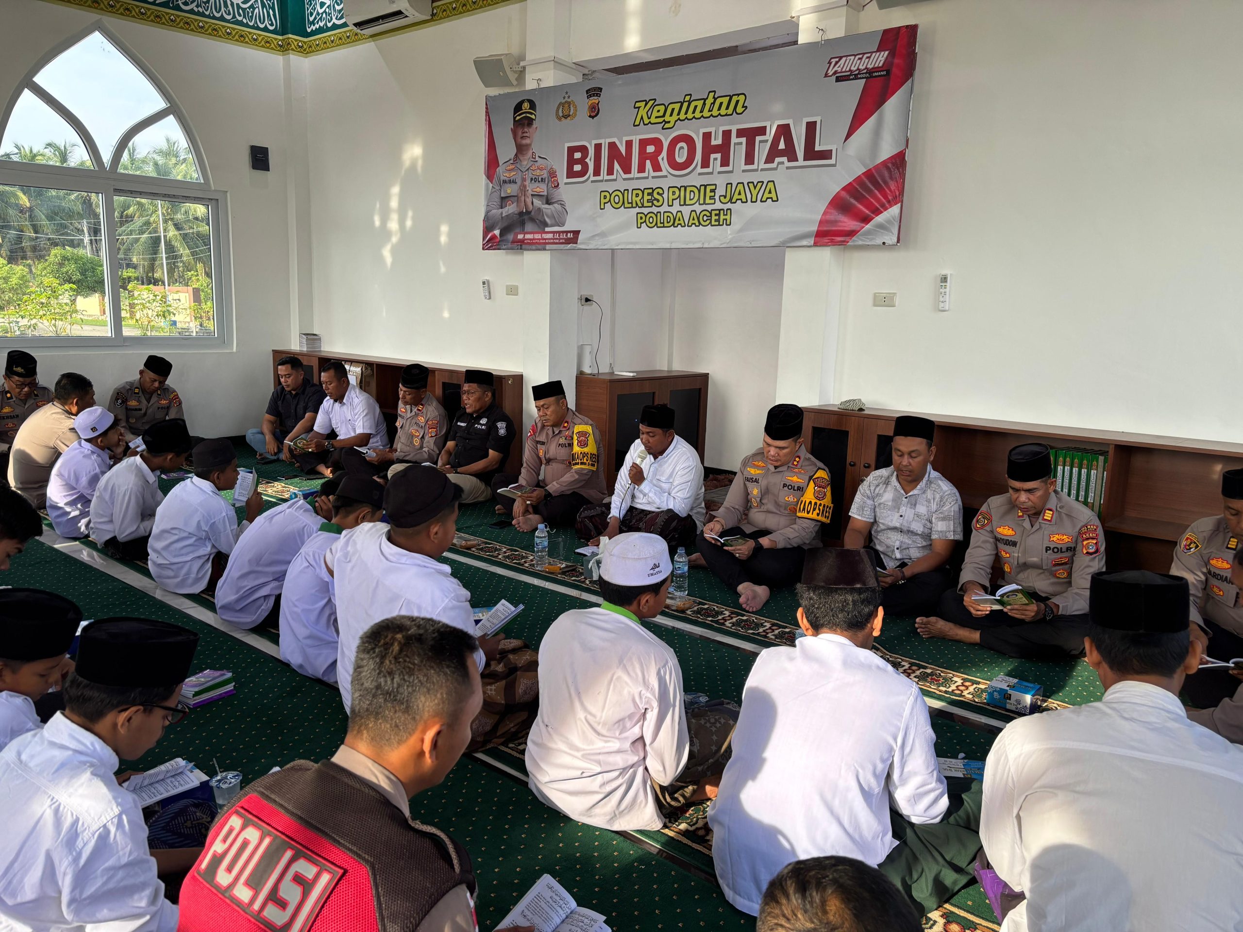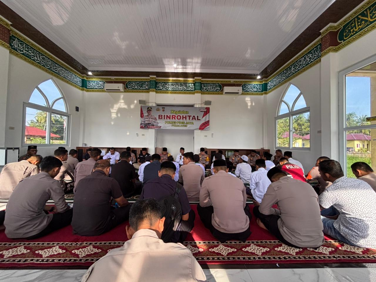 Polres Pidie Jaya Gelar Binrohtal dan Santunan Anak Yatim di Masjid Al-Fahri