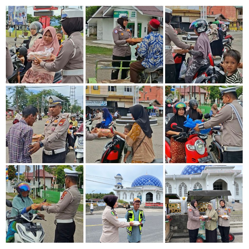 Meureudu – Blusuk.online – Polres Pidie Jaya melaksanakan kegiatan Jumat Berkah sekaligus sosialisasi Undang-Undang Lalu Lintas No. 22 Tahun 2009 pada Jumat, 14 November 2025. Kegiatan ini digelar di dua lokasi berbeda dengan total pembagian 140 kotak nasi kepada masyarakat.