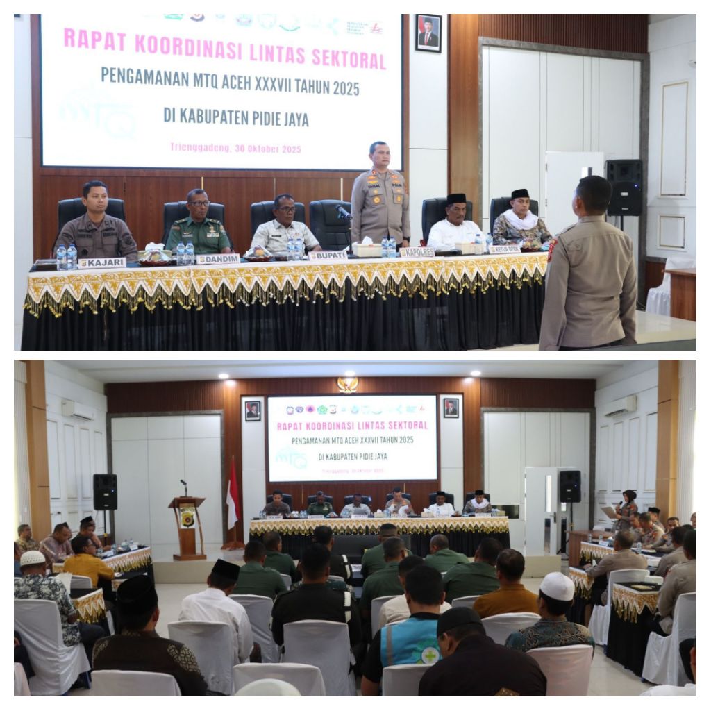 Kegiatan berlangsung pada Kamis (30/10/2025) di Aula Tathya Dharaka Mapolres Pidie Jaya, Gampong Tueng Kluet, Kecamatan Trienggadeng, Kabupaten Pidie Jaya. Rakor ini dihadiri oleh unsur Forkopimda, instansi terkait, serta panitia penyelenggara MTQ Aceh XXXVII.