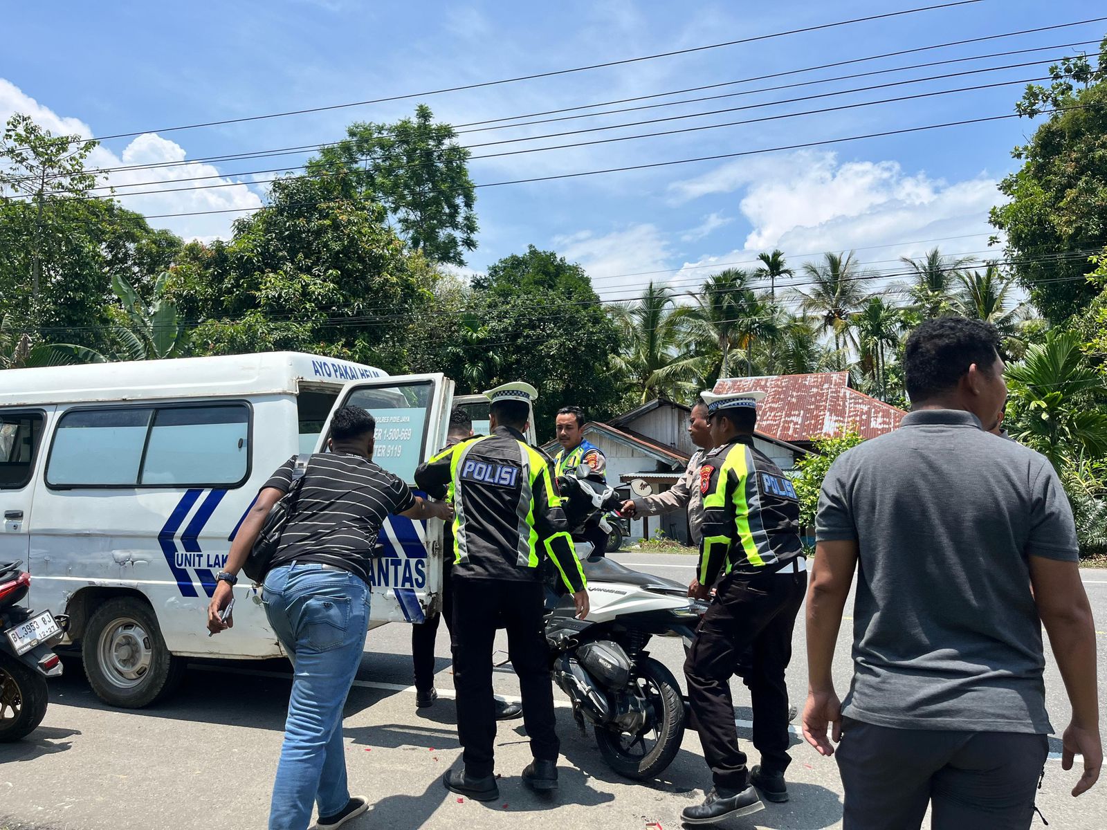 Tidak hanya itu, tim patroli juga mendatangi lokasi kejadian kecelakaan lalu lintas di Simpang Gampong Reudep, Kecamatan Panteraja, Kabupaten Pidie Jaya. Peristiwa tersebut melibatkan sepeda motor Honda Vario 150 cc dan satu unit becak. Korban telah dievakuasi ke RSUD Pidie Jaya untuk mendapatkan perawatan, sementara penanganan lebih lanjut dilakukan oleh Satuan Lalu Lintas.
