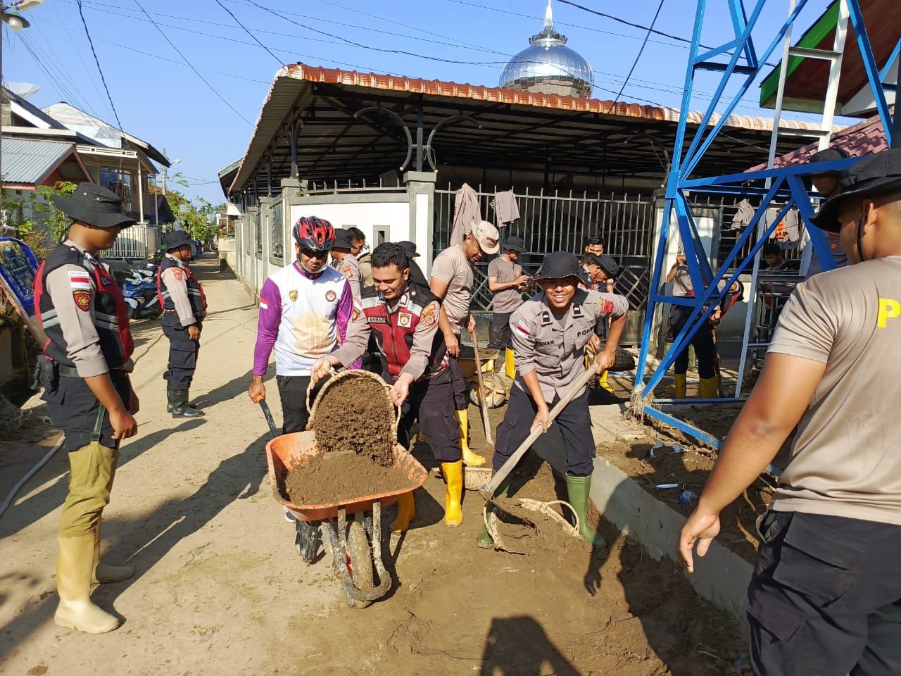 Kegiatan pemulihan dilakukan secara berkelanjutan dengan melibatkan personel Polri dan masyarakat di Kecamatan Meureudu, Kabupaten Pidie Jaya. Kehadiran Polri di tengah masyarakat menjadi bukti komitmen dalam membantu memulihkan lingkungan serta fasilitas umum yang terdampak banjir.