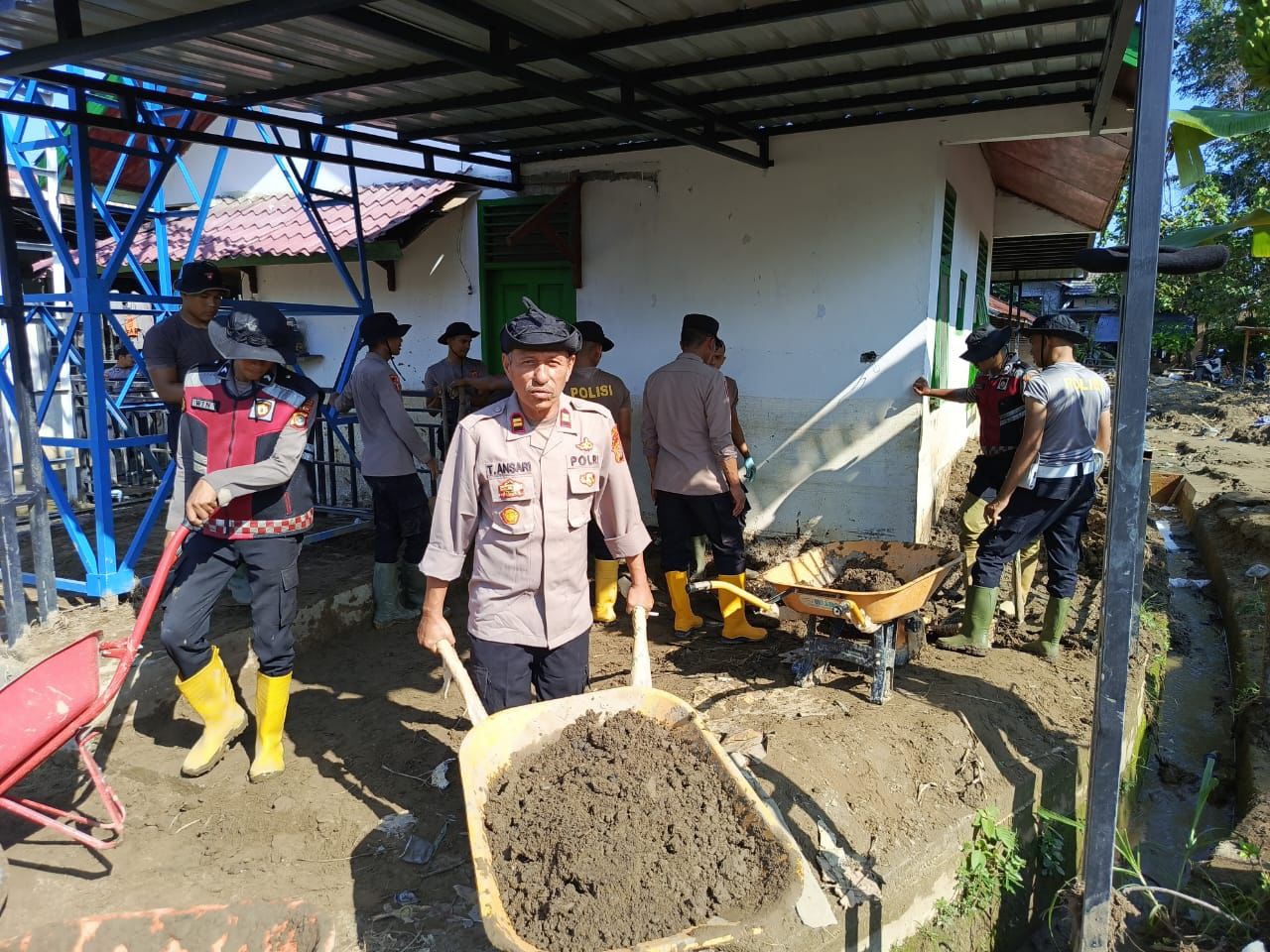 Kegiatan pemulihan dilakukan secara berkelanjutan dengan melibatkan personel Polri dan masyarakat di Kecamatan Meureudu, Kabupaten Pidie Jaya. Kehadiran Polri di tengah masyarakat menjadi bukti komitmen dalam membantu memulihkan lingkungan serta fasilitas umum yang terdampak banjir.